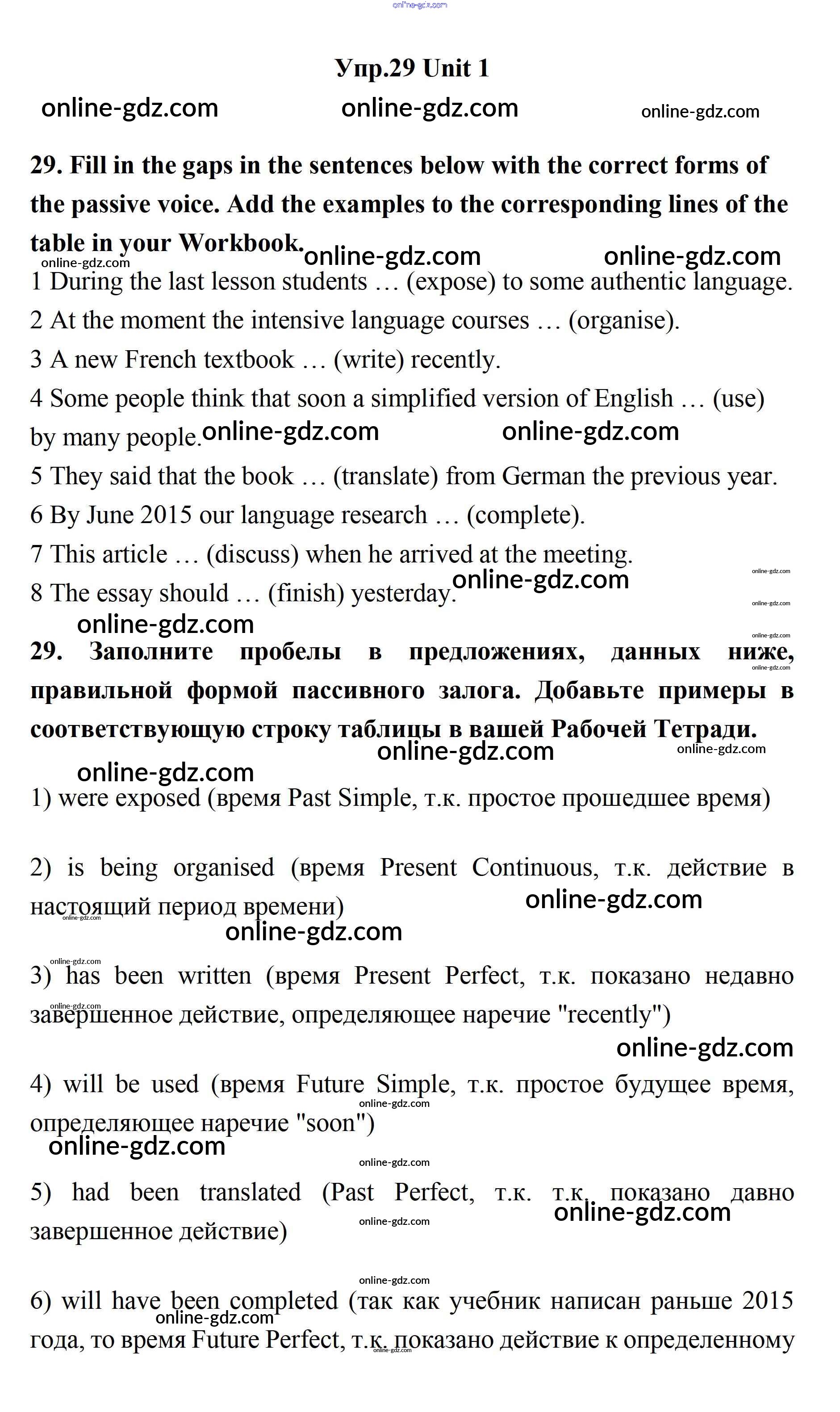 Готовые домашние задания по Английскому языку за 11 класс Учебник Биболетова, Бабушис Enjoy English 2017 - Unit 1. Young People in Society 29
