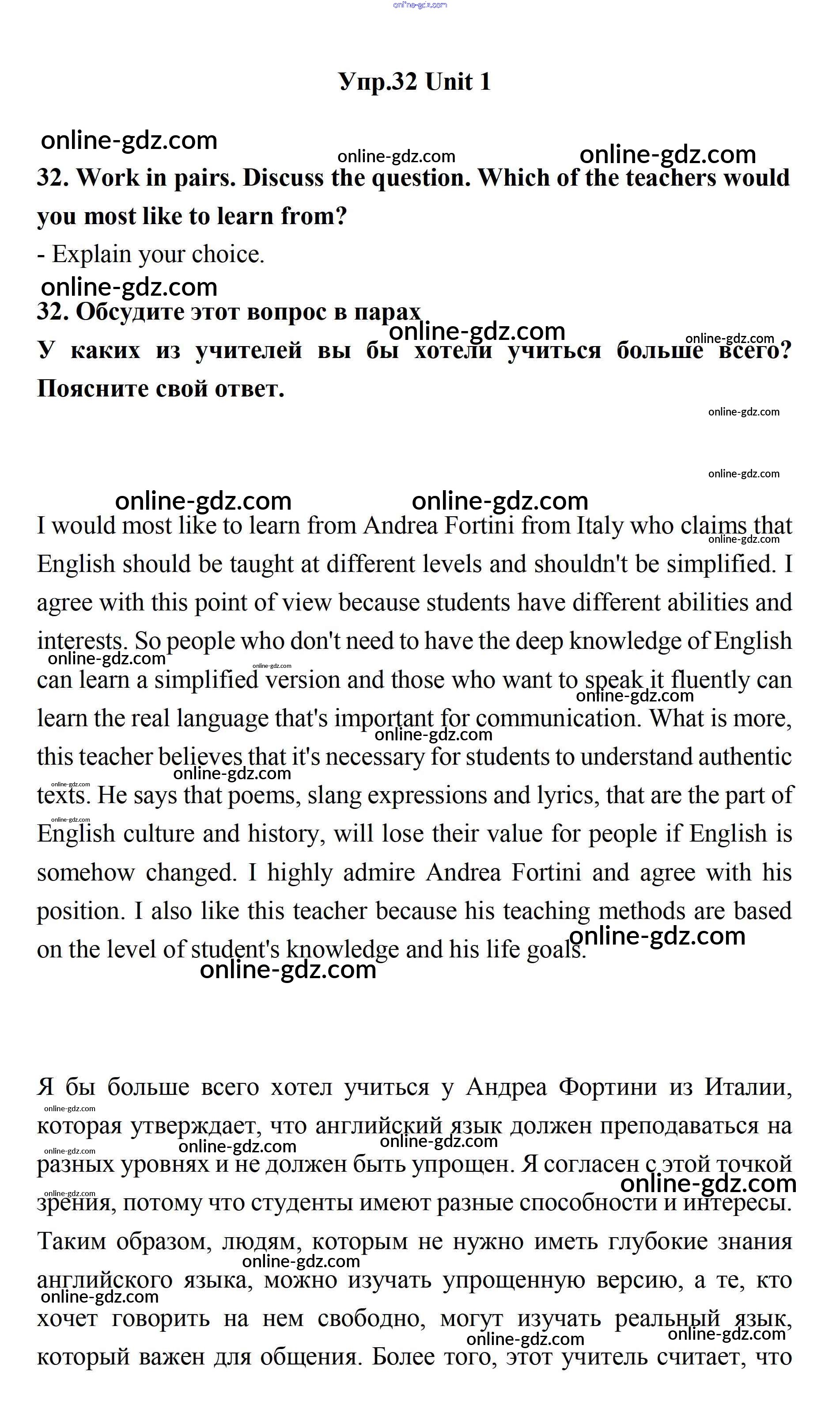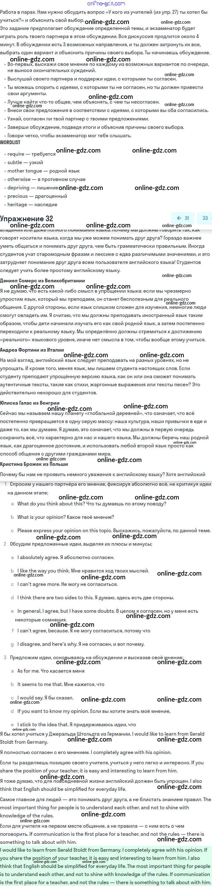 Готовые домашние задания по Английскому языку за 11 класс Учебник Биболетова, Бабушис Enjoy English 2017 - Unit 1. Young People in Society 32
