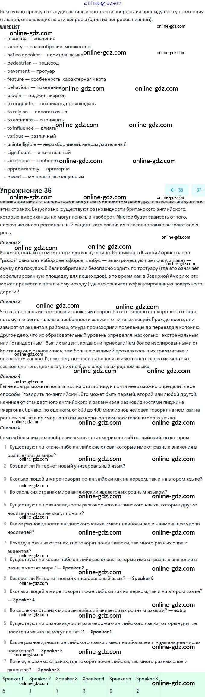Готовые домашние задания по Английскому языку за 11 класс Учебник Биболетова, Бабушис Enjoy English 2017 - Unit 1. Young People in Society 36