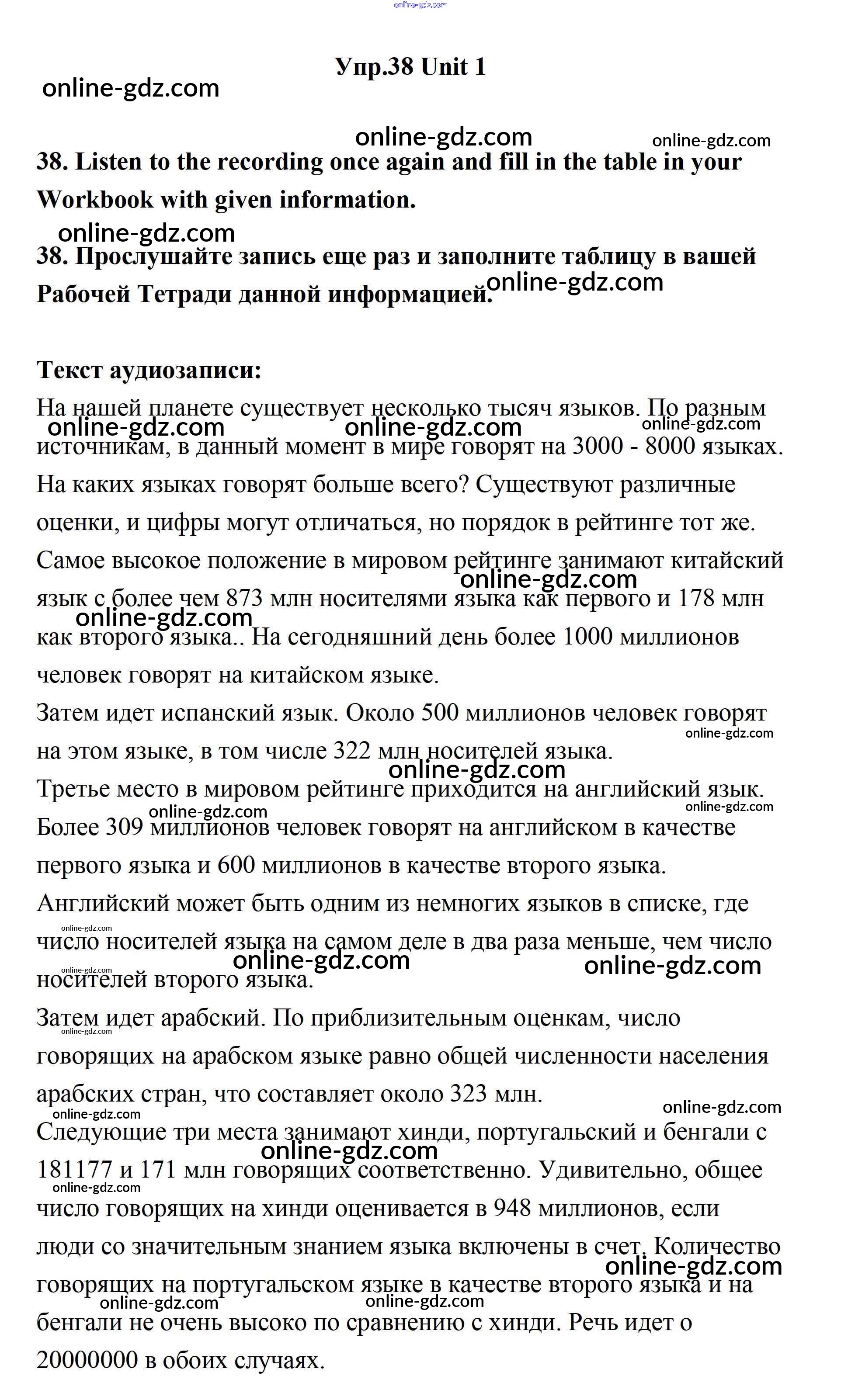 Готовые домашние задания по Английскому языку за 11 класс Учебник Биболетова, Бабушис Enjoy English 2017 - Unit 1. Young People in Society 38