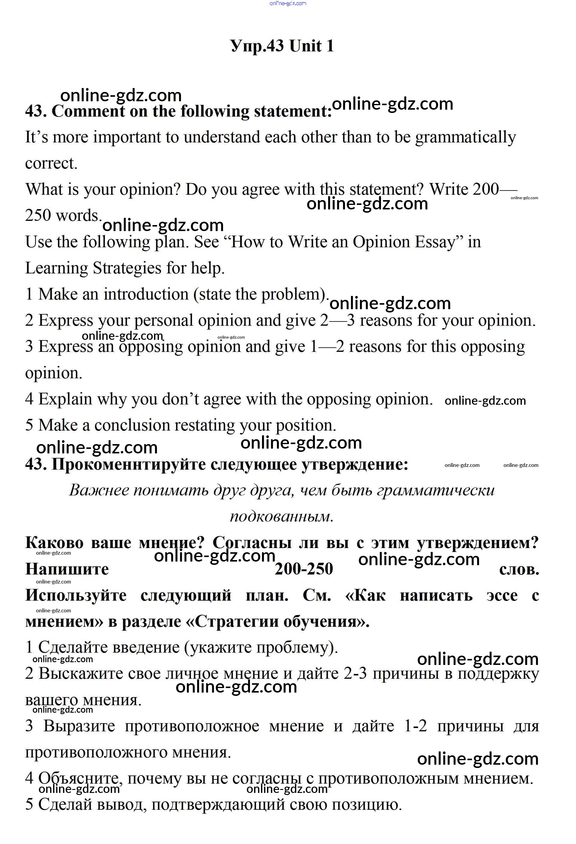 Готовые домашние задания по Английскому языку за 11 класс Учебник Биболетова, Бабушис Enjoy English 2017 - Unit 1. Young People in Society 43