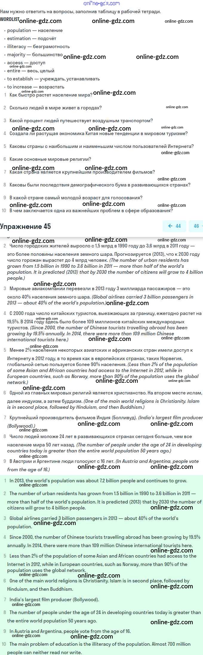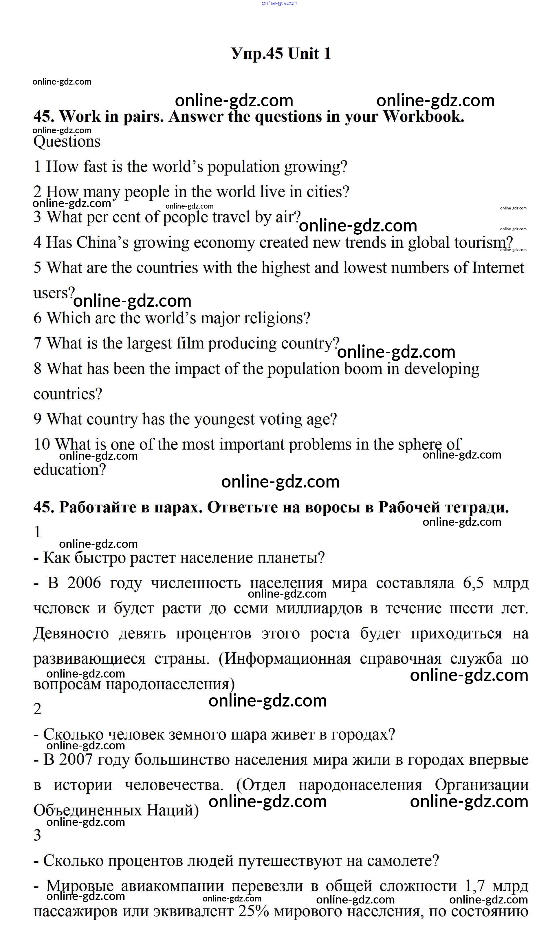 Готовые домашние задания по Английскому языку за 11 класс Учебник Биболетова, Бабушис Enjoy English 2017 - Unit 1. Young People in Society 45