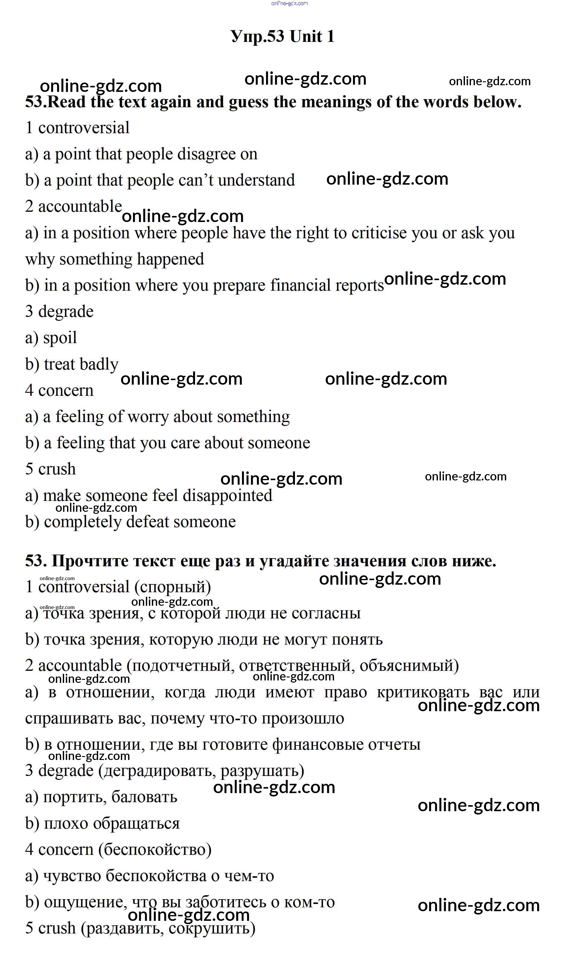 Готовые домашние задания по Английскому языку за 11 класс Учебник Биболетова, Бабушис Enjoy English 2017 - Unit 1. Young People in Society 53