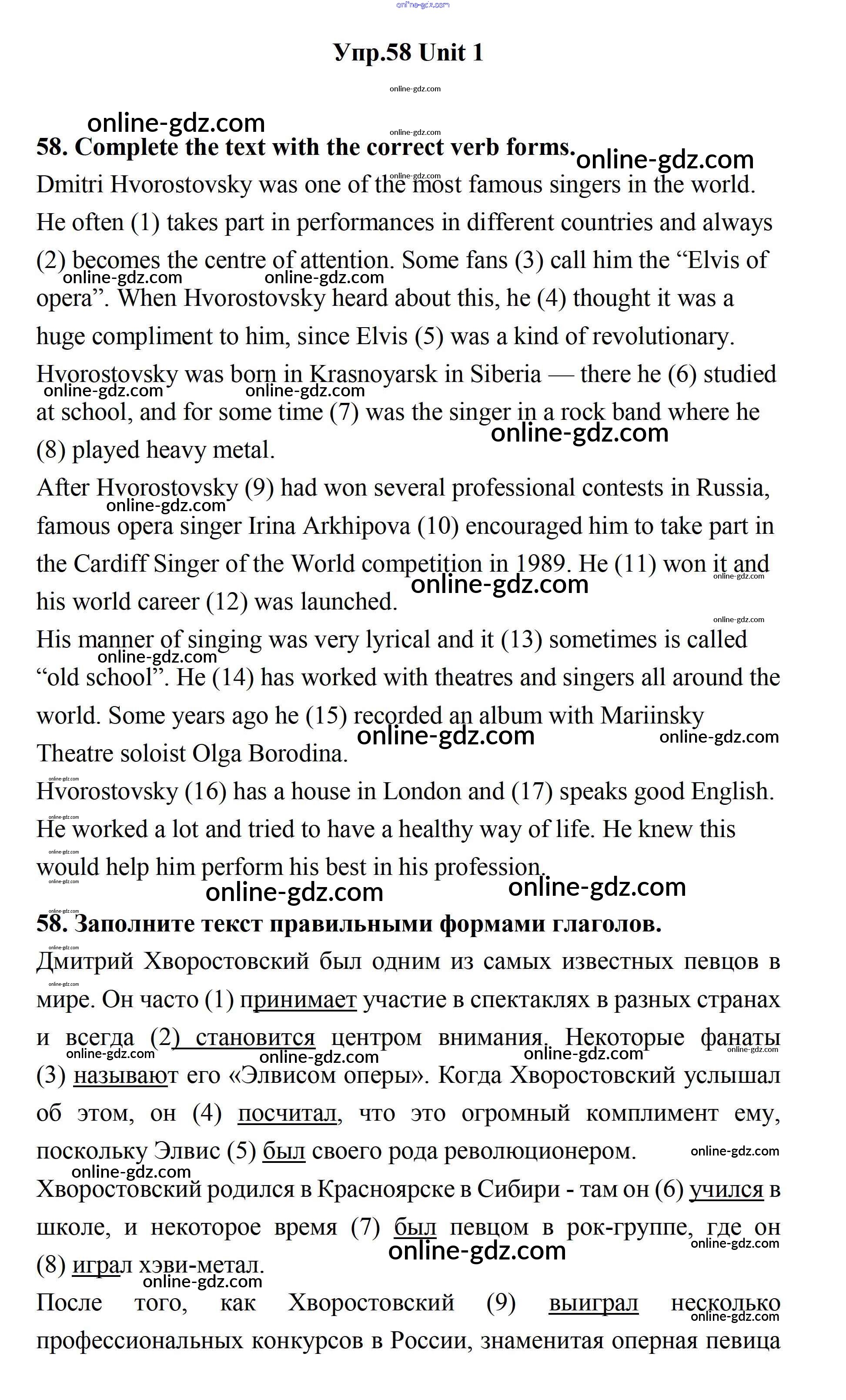 Готовые домашние задания по Английскому языку за 11 класс Учебник Биболетова, Бабушис Enjoy English 2017 - Unit 1. Young People in Society 58