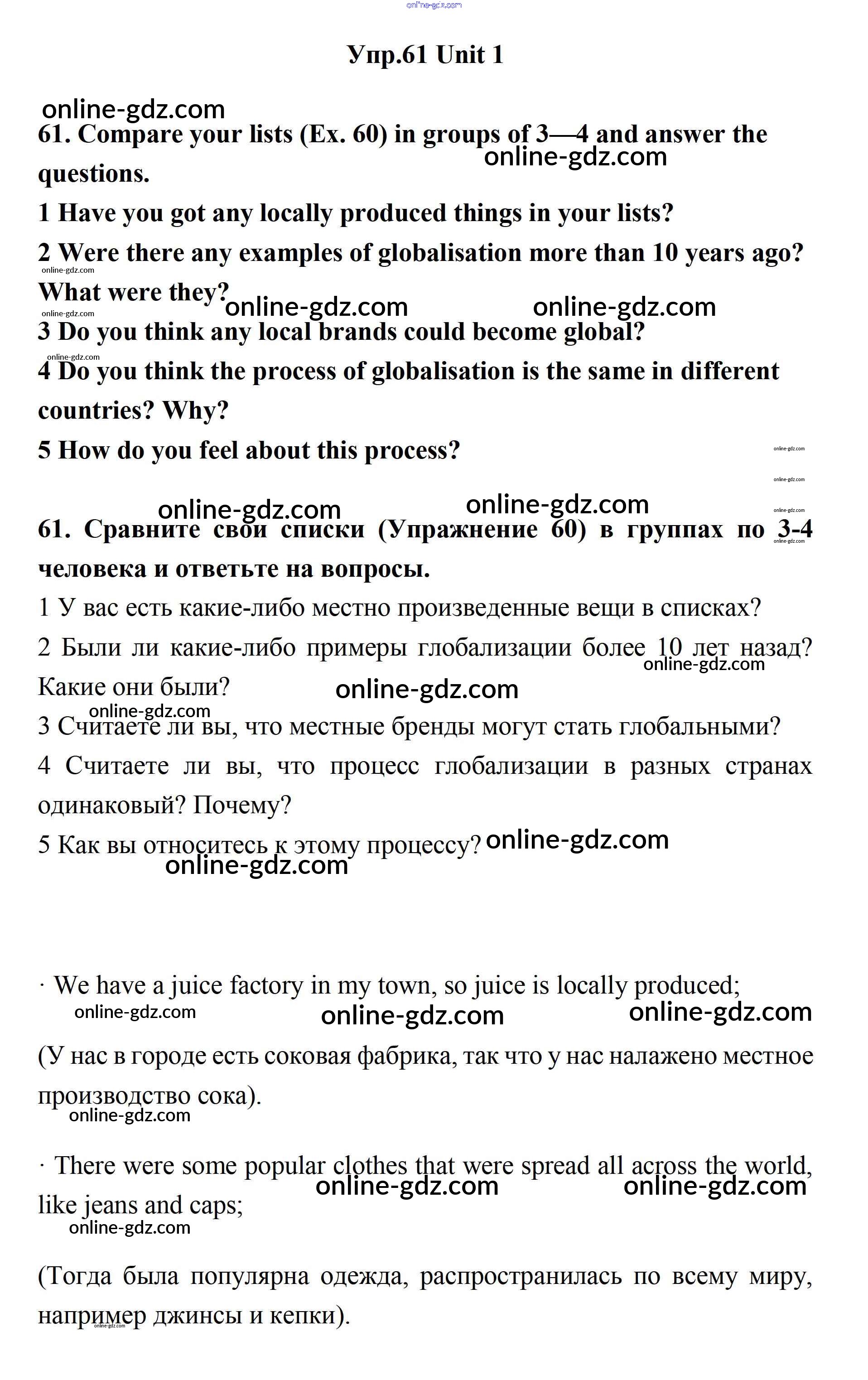 Готовые домашние задания по Английскому языку за 11 класс Учебник Биболетова, Бабушис Enjoy English 2017 - Unit 1. Young People in Society 61