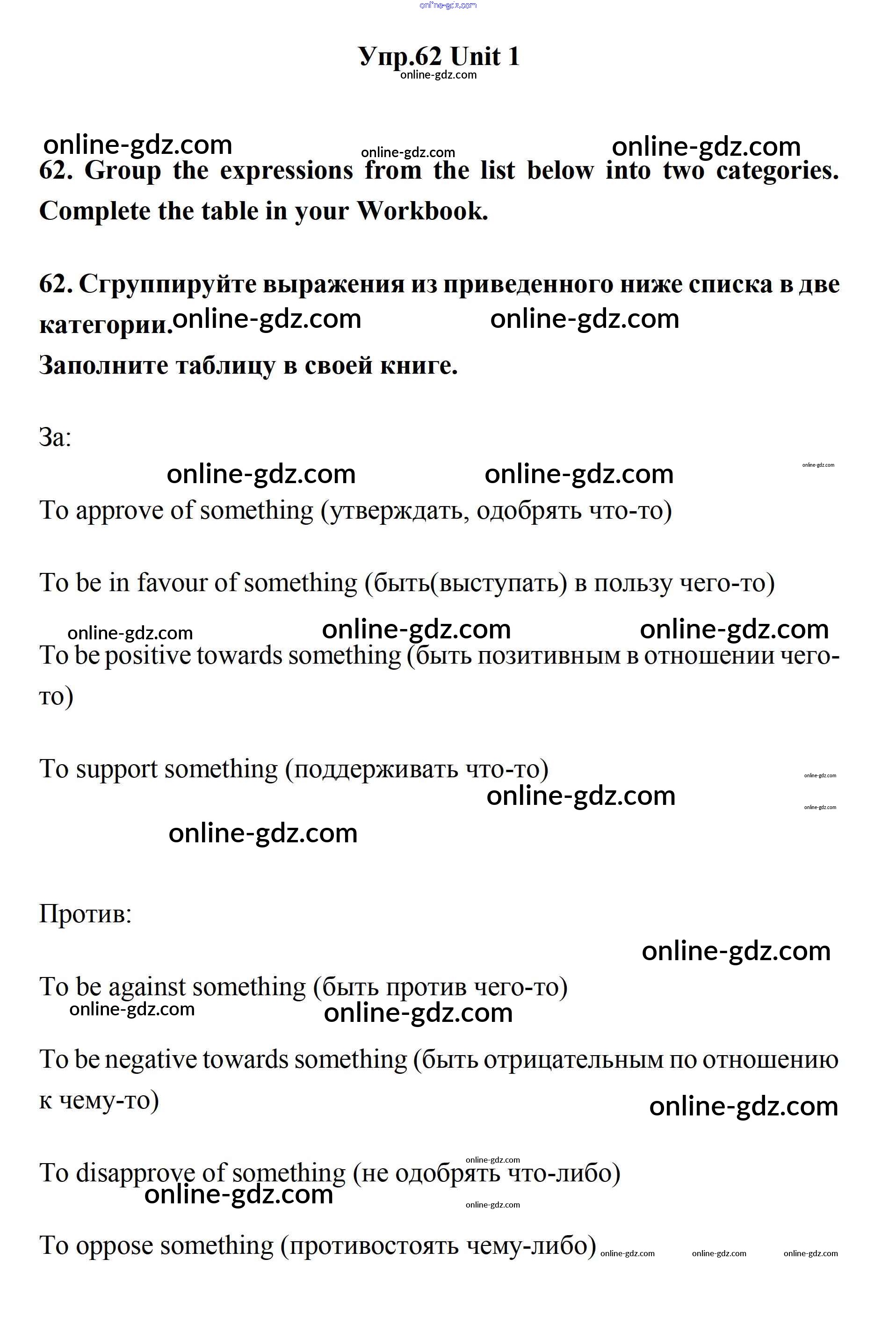 Готовые домашние задания по Английскому языку за 11 класс Учебник Биболетова, Бабушис Enjoy English 2017 - Unit 1. Young People in Society 62