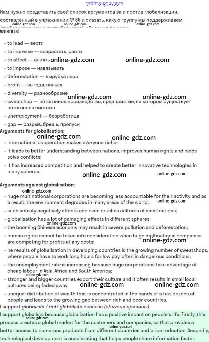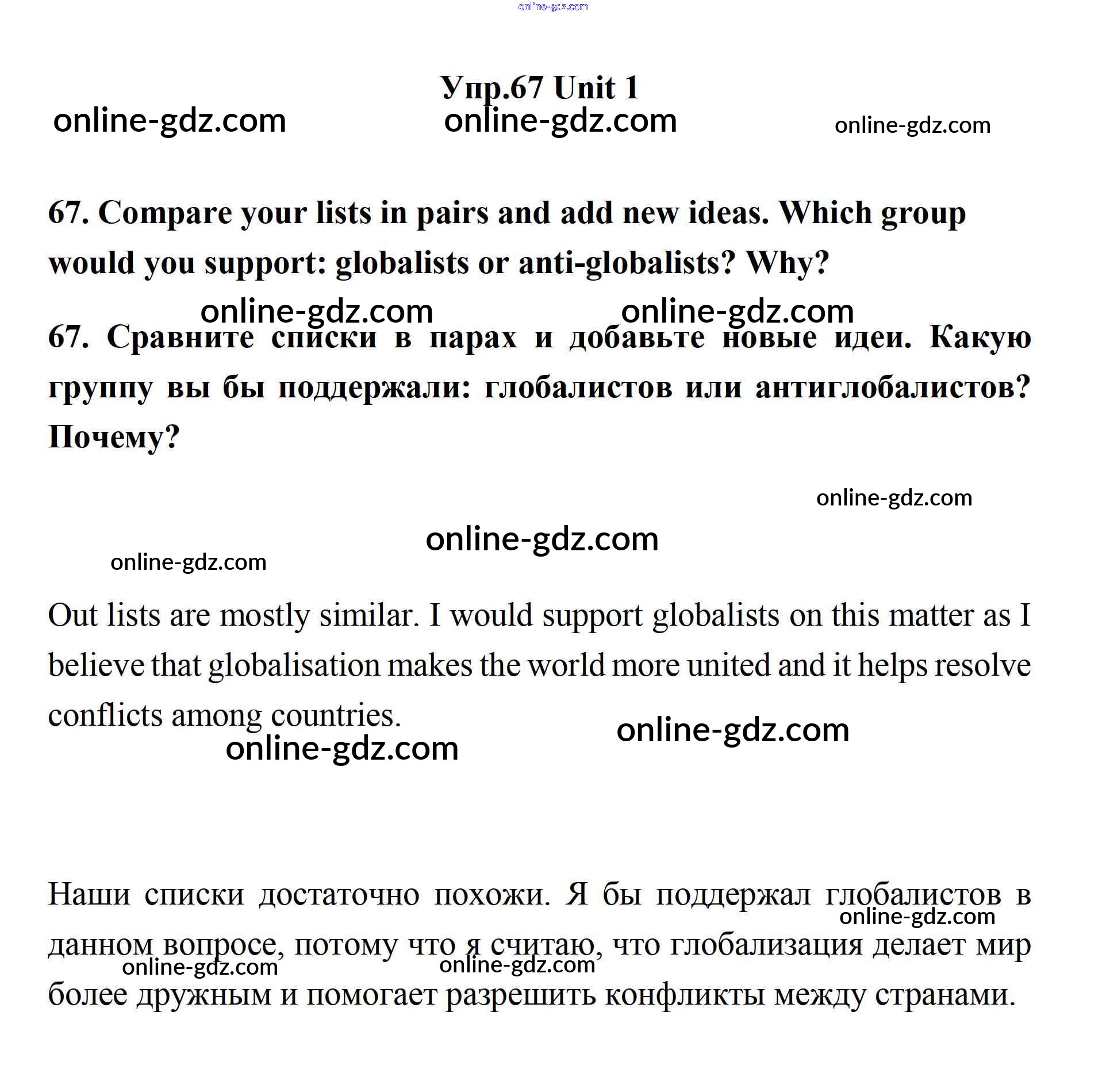 Готовые домашние задания по Английскому языку за 11 класс Учебник Биболетова, Бабушис Enjoy English 2017 - Unit 1. Young People in Society 67