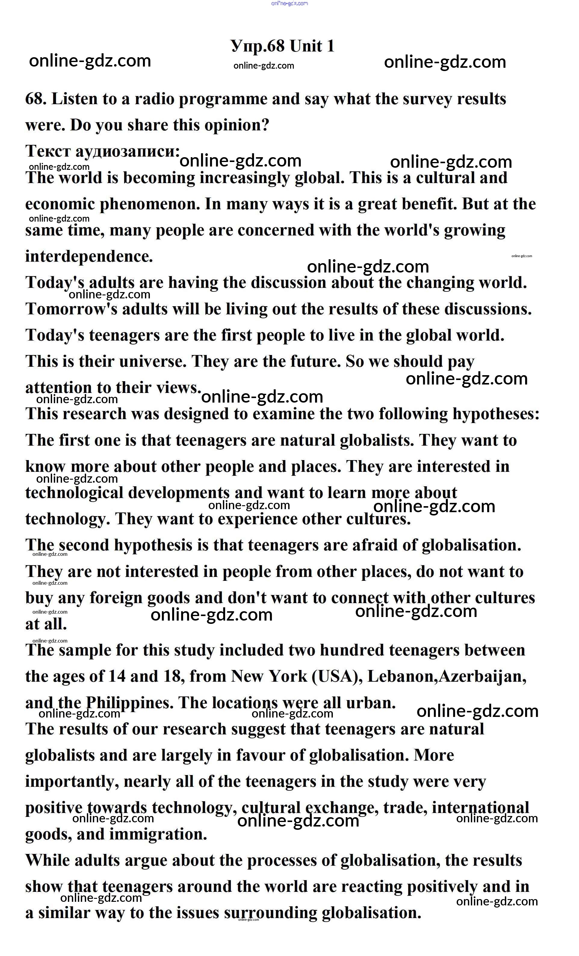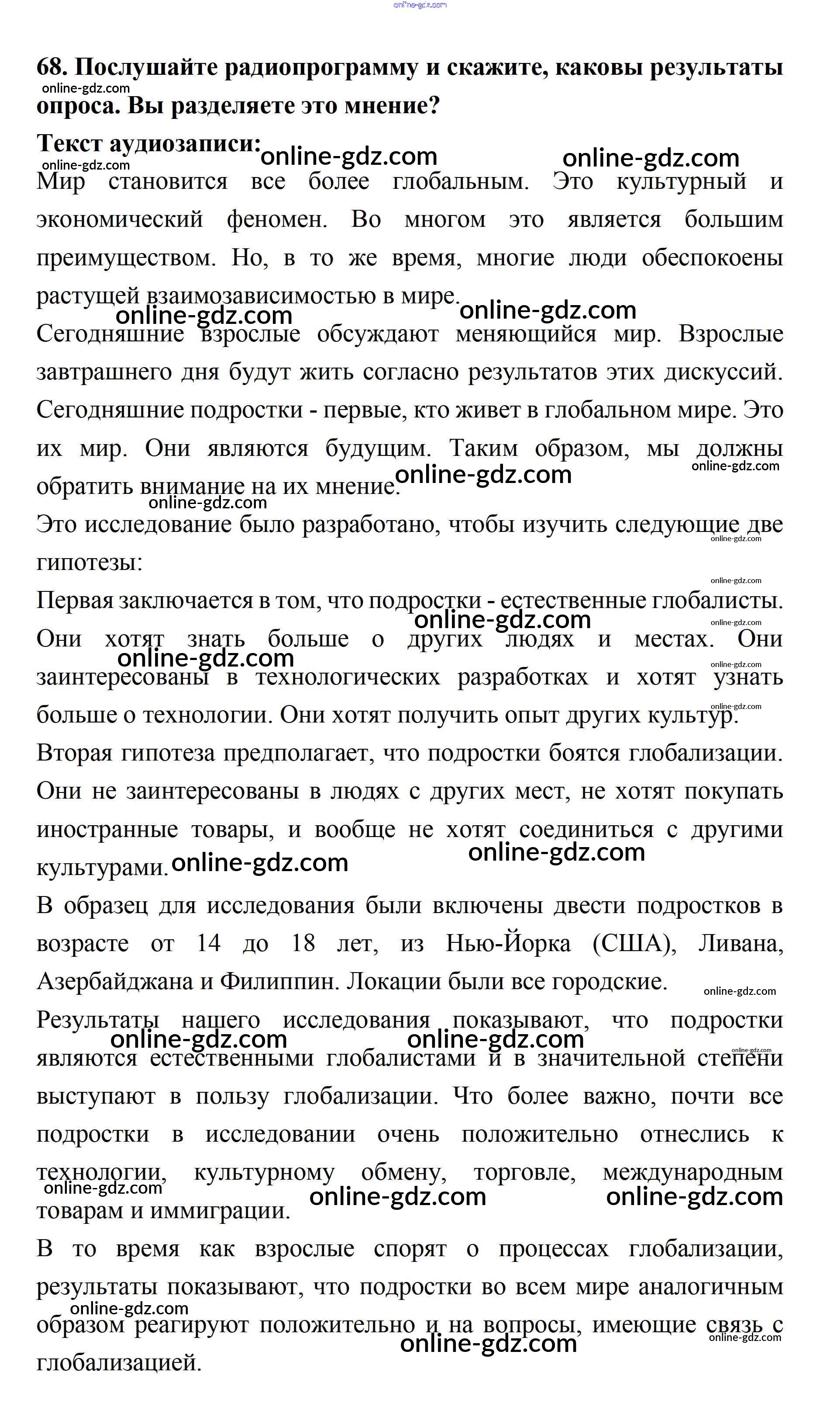 Готовые домашние задания по Английскому языку за 11 класс Учебник Биболетова, Бабушис Enjoy English 2017 - Unit 1. Young People in Society 68