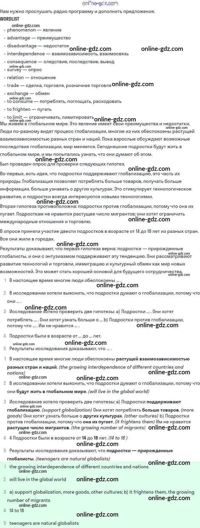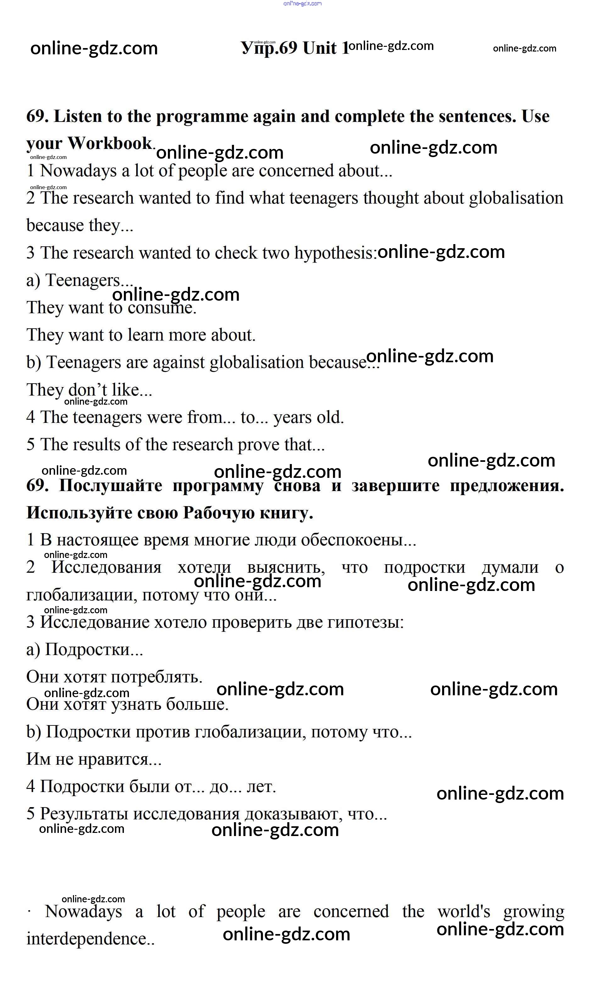 Готовые домашние задания по Английскому языку за 11 класс Учебник Биболетова, Бабушис Enjoy English 2017 - Unit 1. Young People in Society 69
