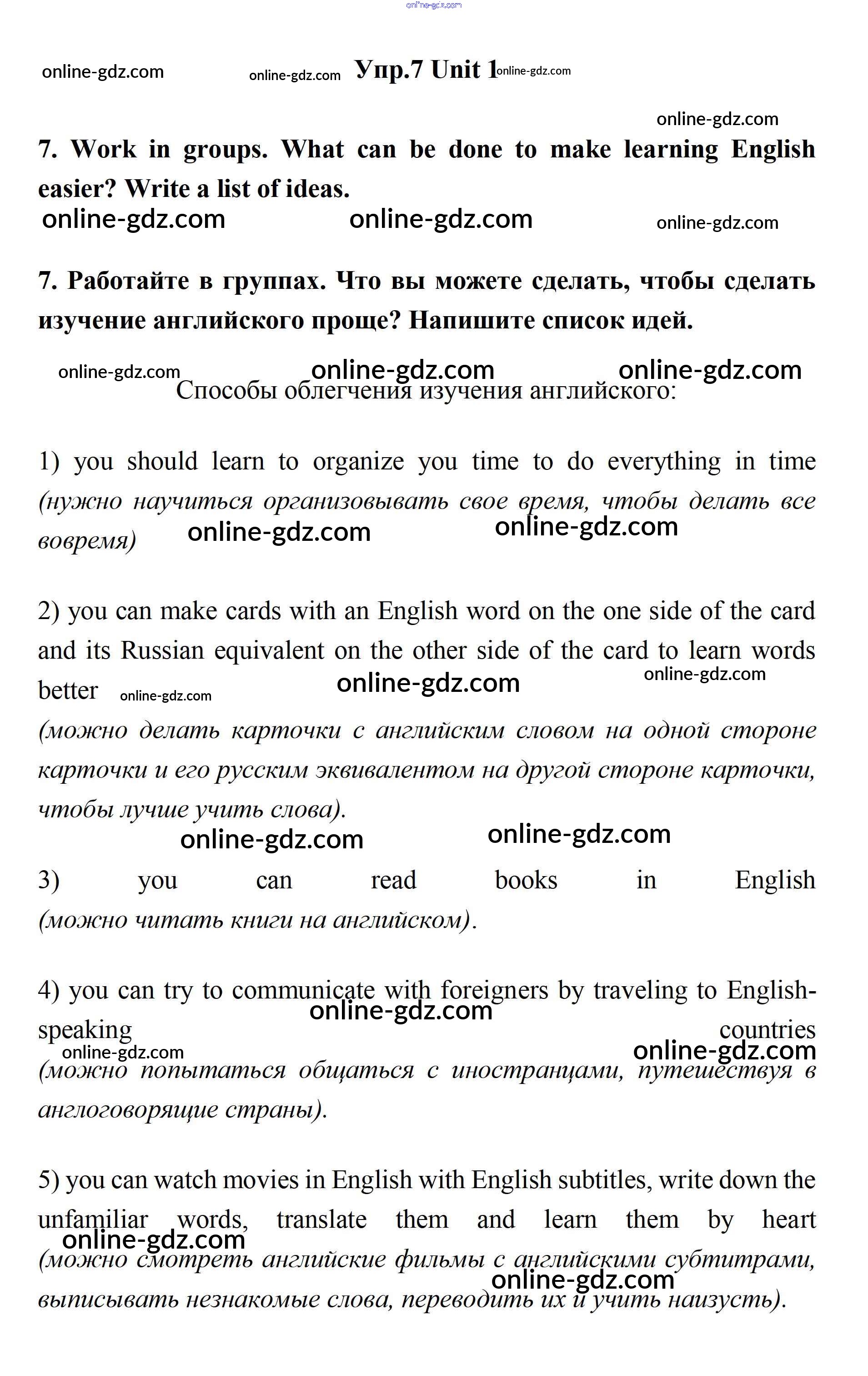Готовые домашние задания по Английскому языку за 11 класс Учебник Биболетова, Бабушис Enjoy English 2017 - Unit 1. Young People in Society 7