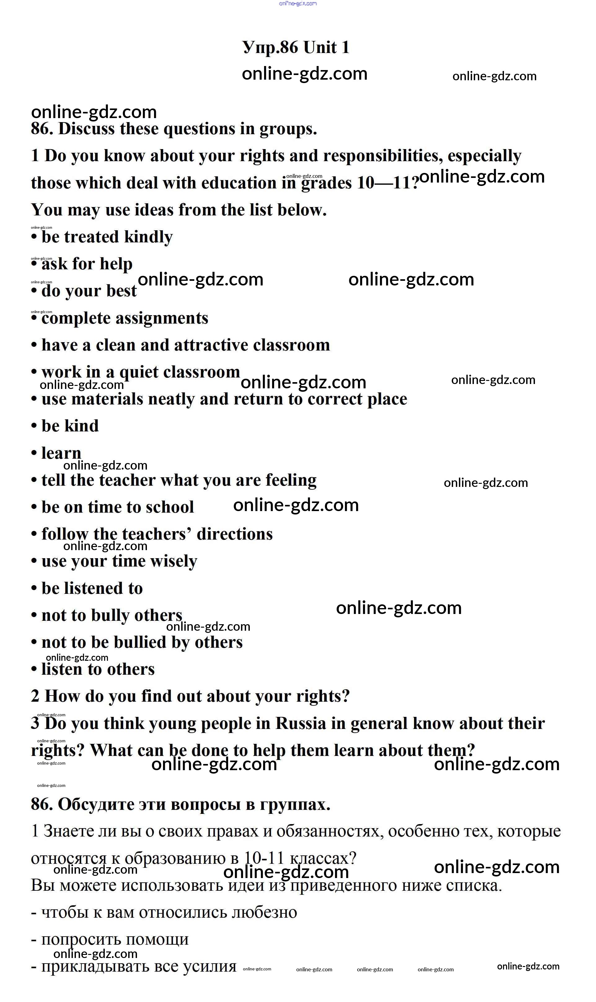 Готовые домашние задания по Английскому языку за 11 класс Учебник Биболетова, Бабушис Enjoy English 2017 - Unit 1. Young People in Society 86