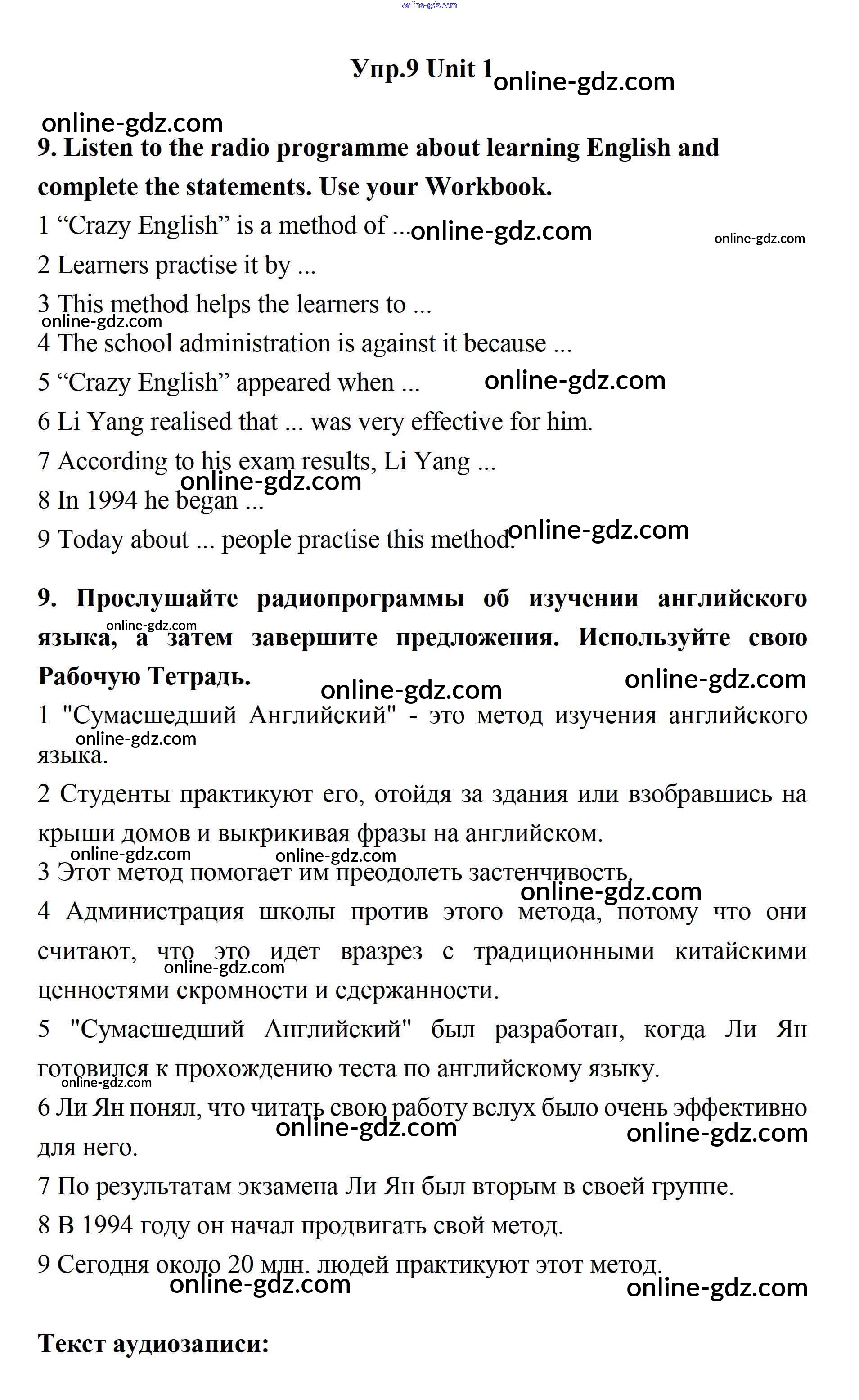 Готовые домашние задания по Английскому языку за 11 класс Учебник Биболетова, Бабушис Enjoy English 2017 - Unit 1. Young People in Society 9