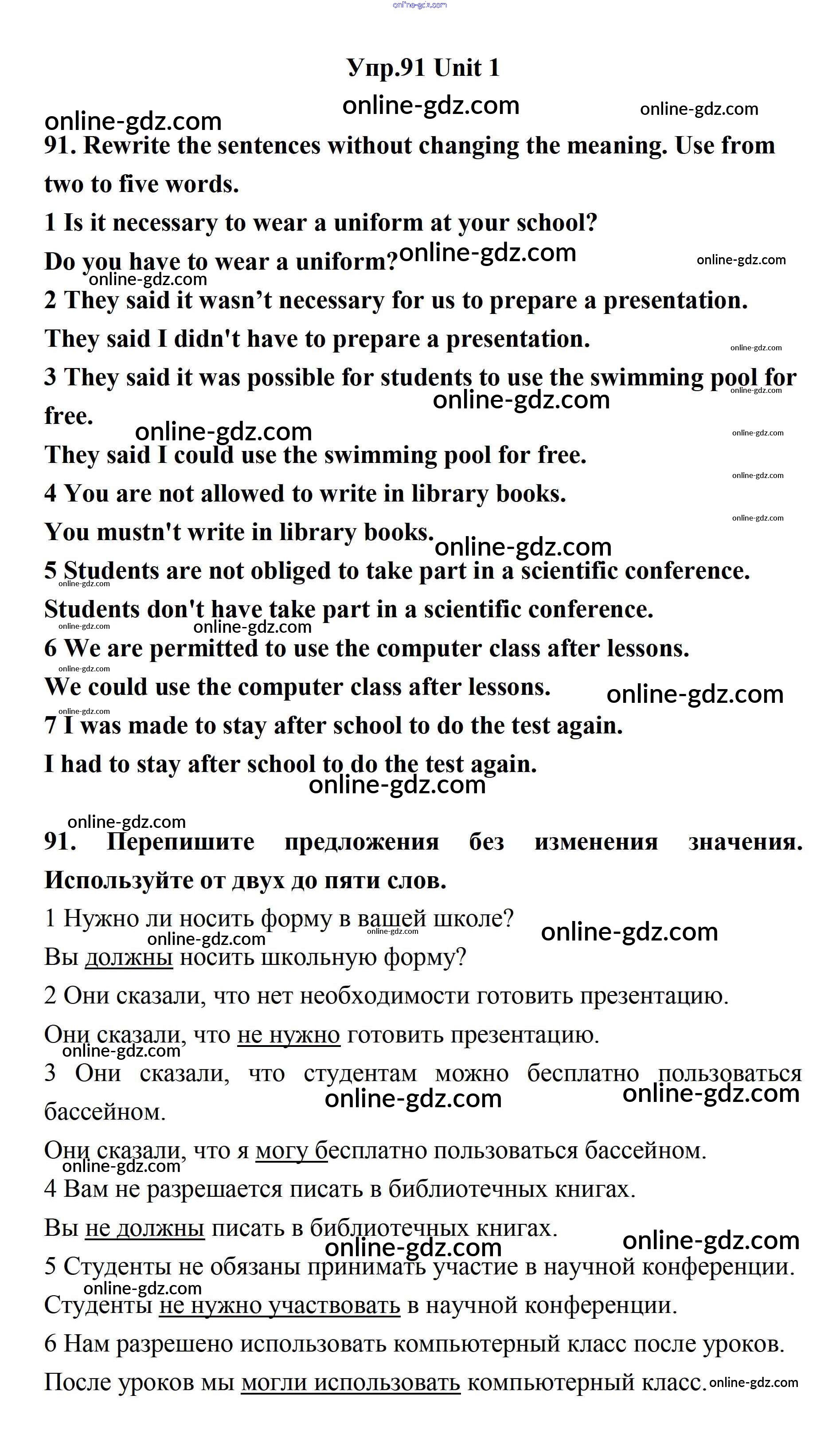 Готовые домашние задания по Английскому языку за 11 класс Учебник Биболетова, Бабушис Enjoy English 2017 - Unit 1. Young People in Society 91