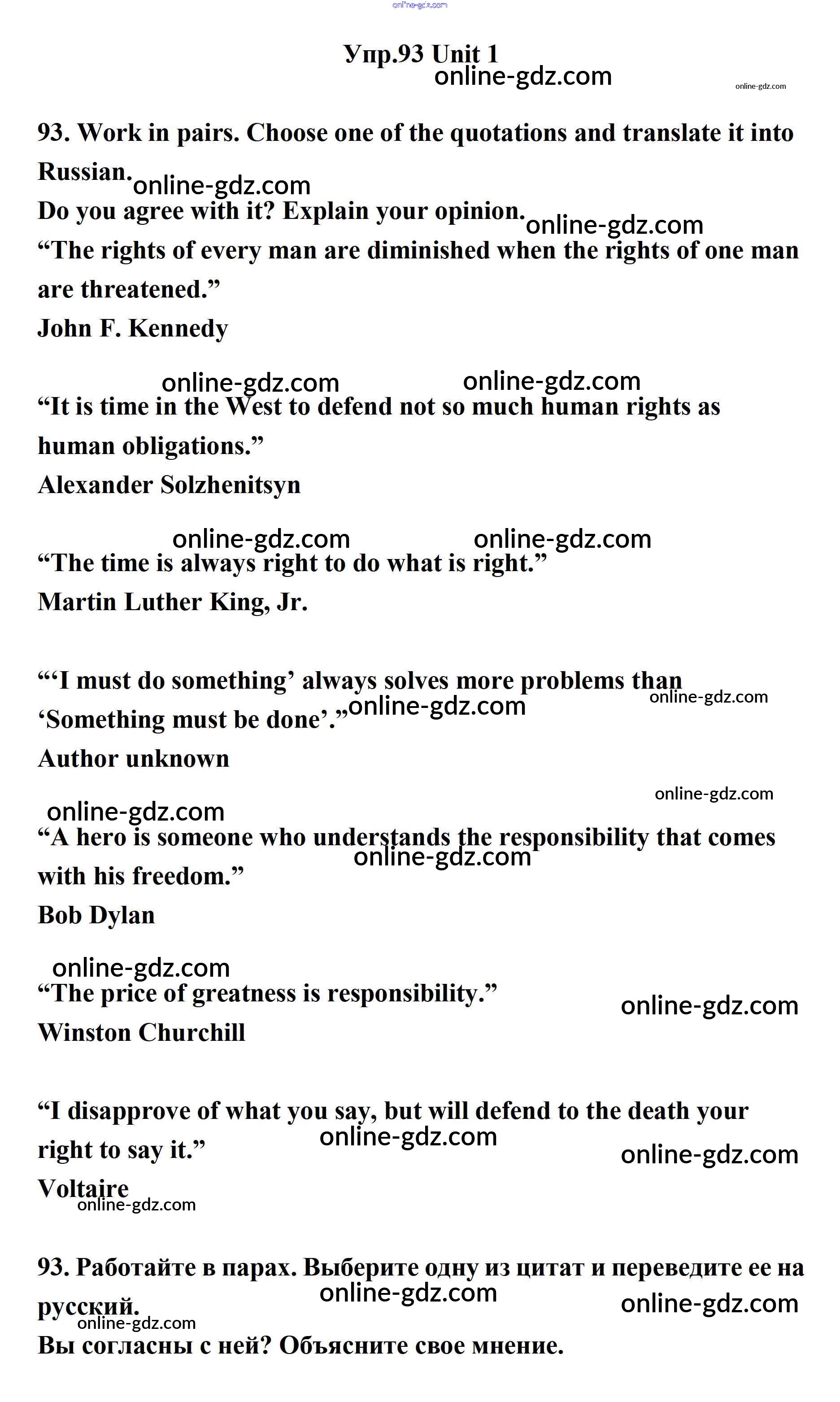 Готовые домашние задания по Английскому языку за 11 класс Учебник Биболетова, Бабушис Enjoy English 2017 - Unit 1. Young People in Society 93