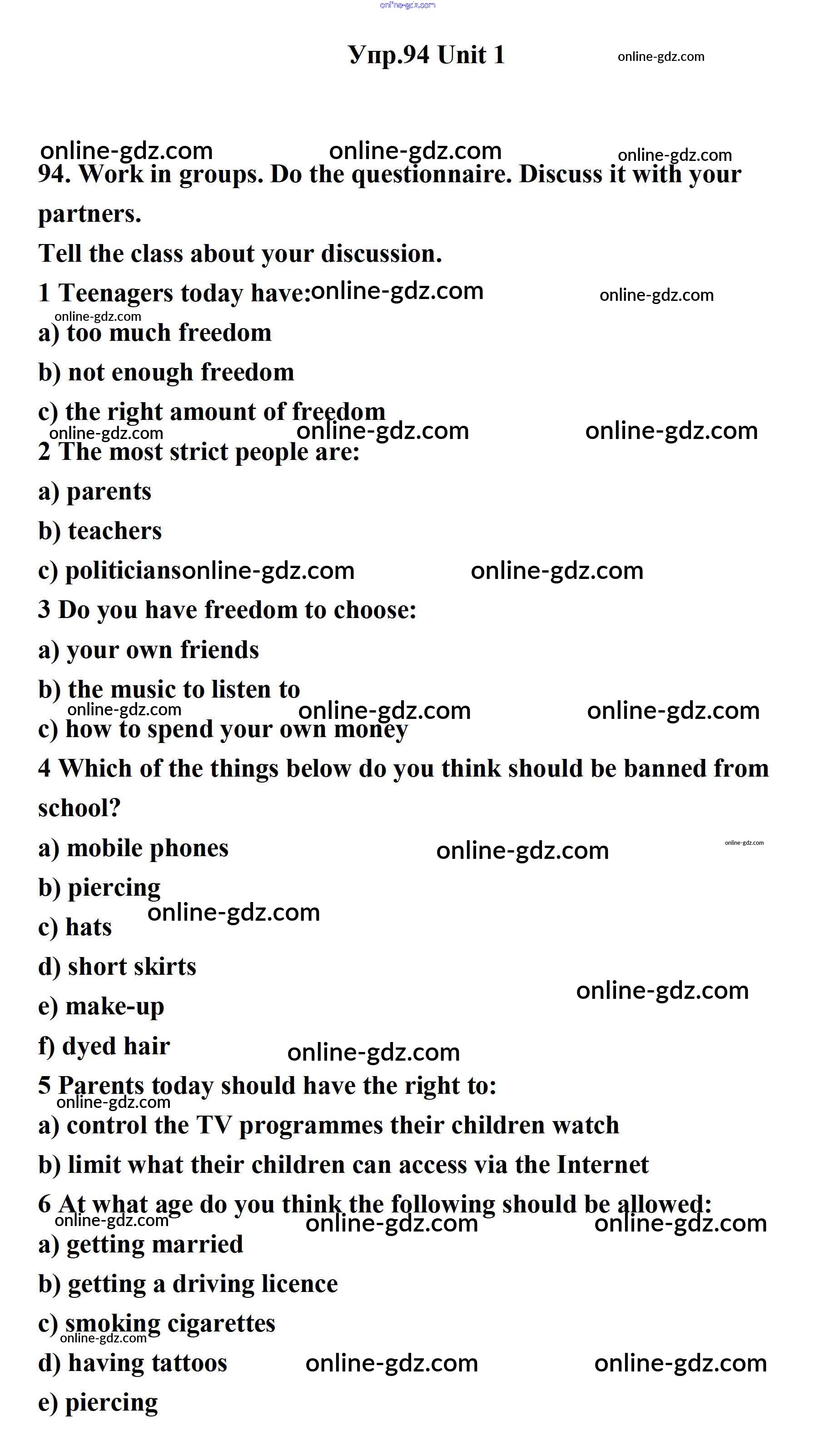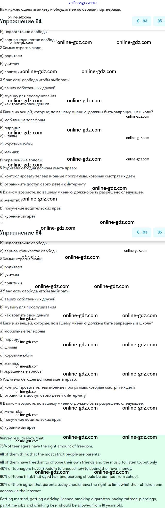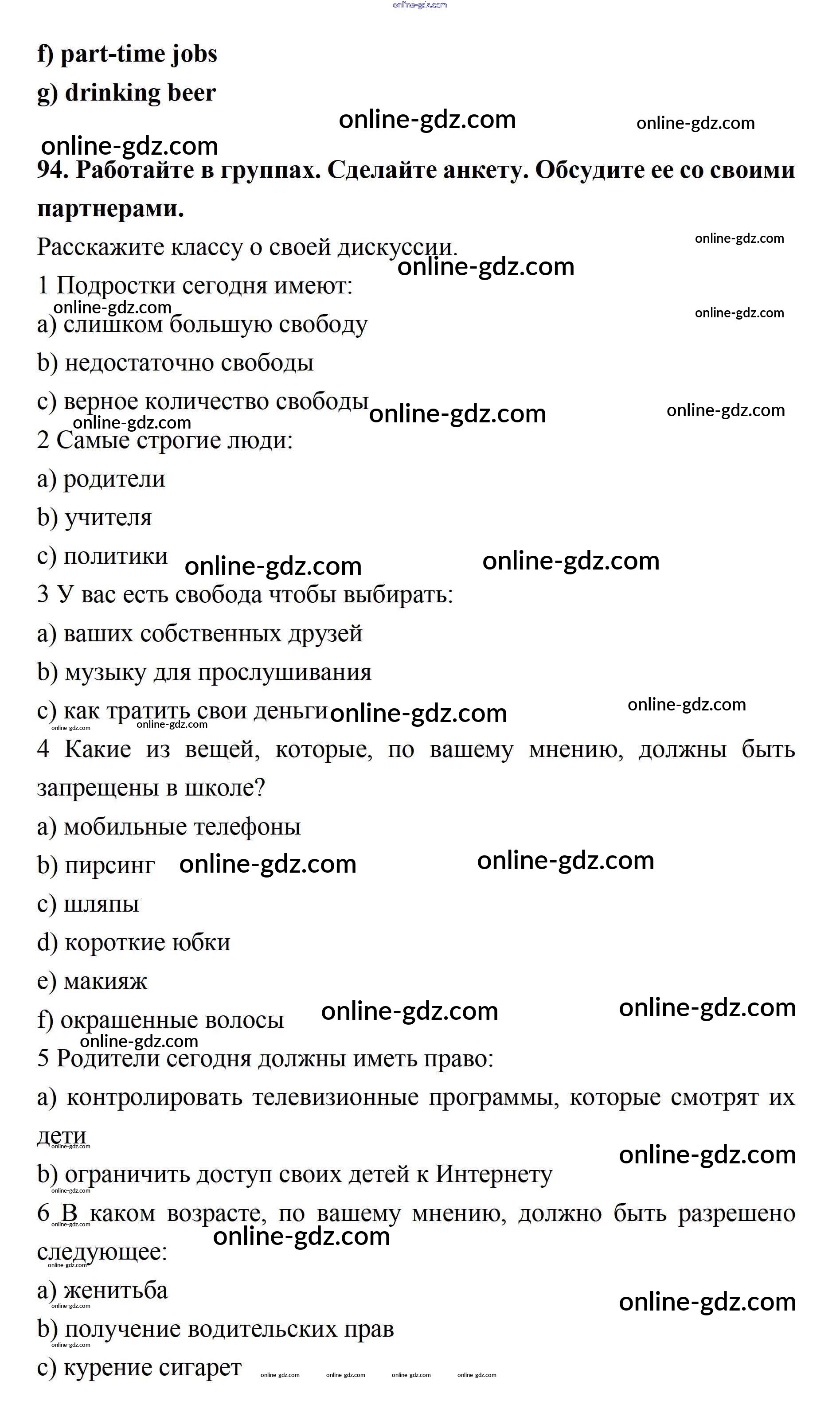 Готовые домашние задания по Английскому языку за 11 класс Учебник Биболетова, Бабушис Enjoy English 2017 - Unit 1. Young People in Society 94