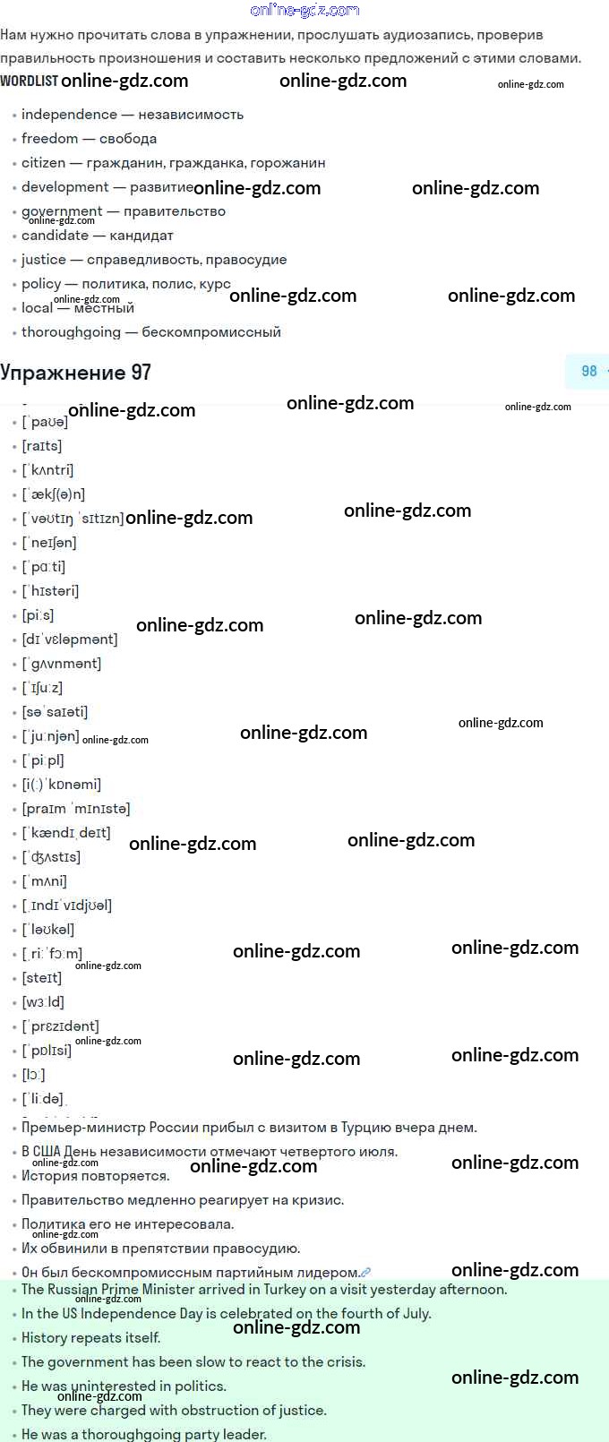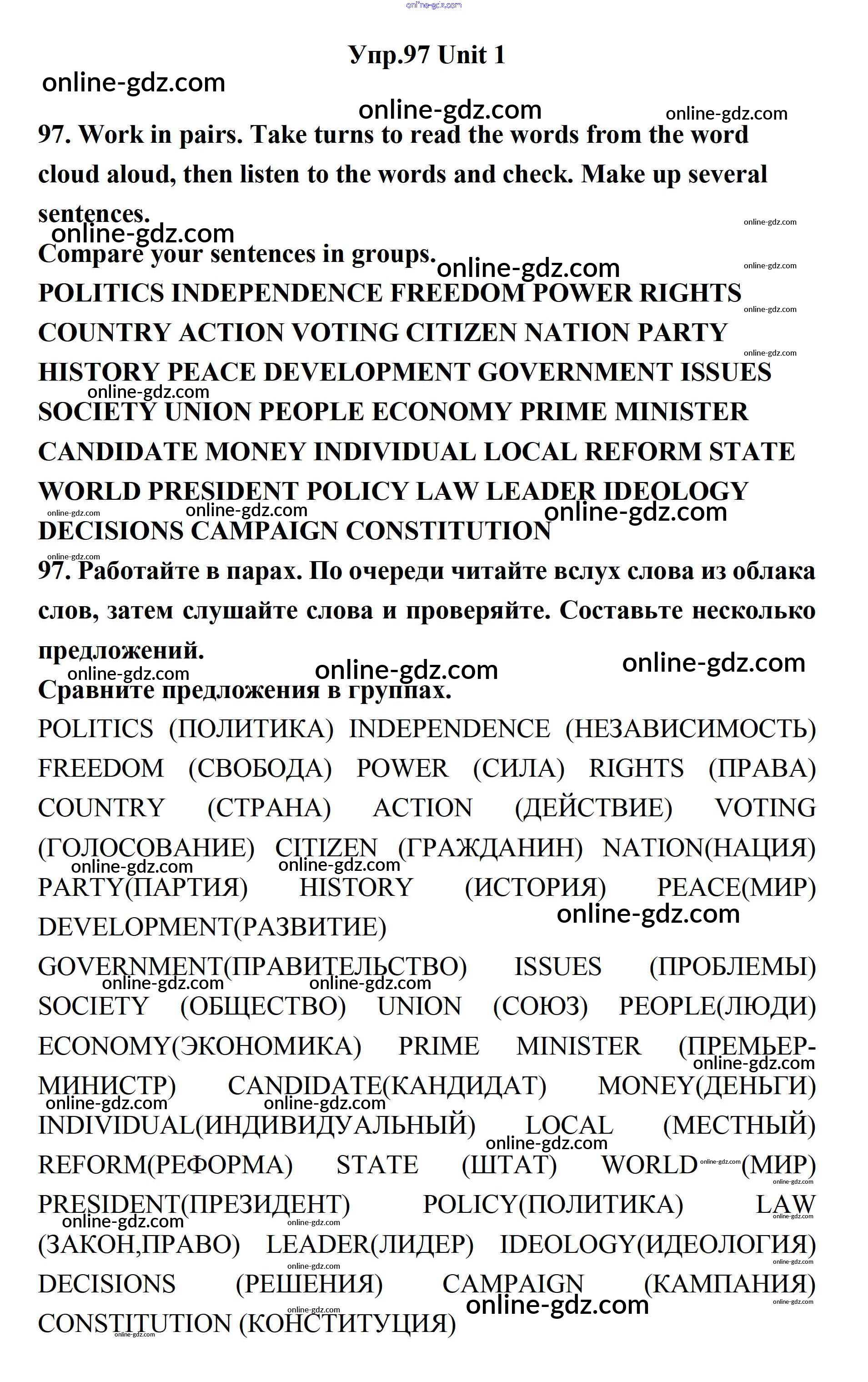 Готовые домашние задания по Английскому языку за 11 класс Учебник Биболетова, Бабушис Enjoy English 2017 - Unit 1. Young People in Society 97