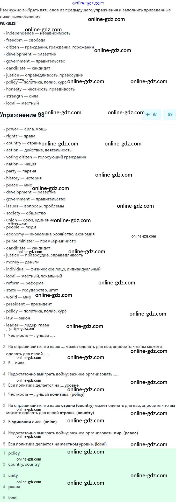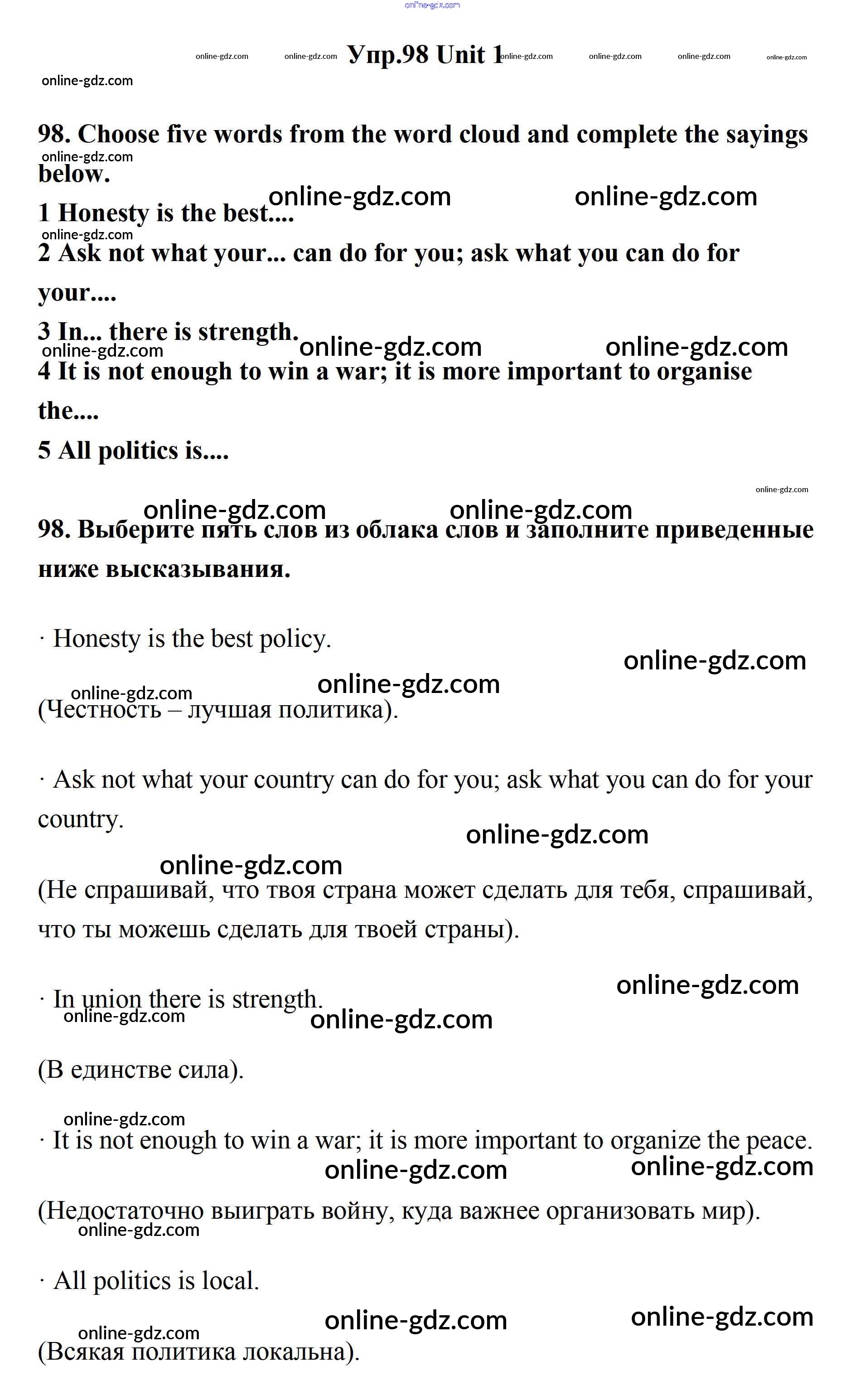 Готовые домашние задания по Английскому языку за 11 класс Учебник Биболетова, Бабушис Enjoy English 2017 - Unit 1. Young People in Society 98
