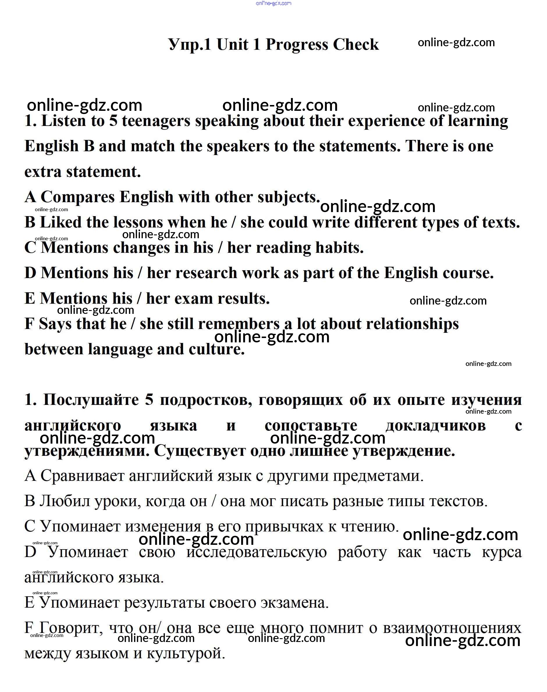 Готовые домашние задания по Английскому языку за 11 класс Учебник Биболетова, Бабушис Enjoy English 2017 - Progress Check Unit 1. Young People in Society 1