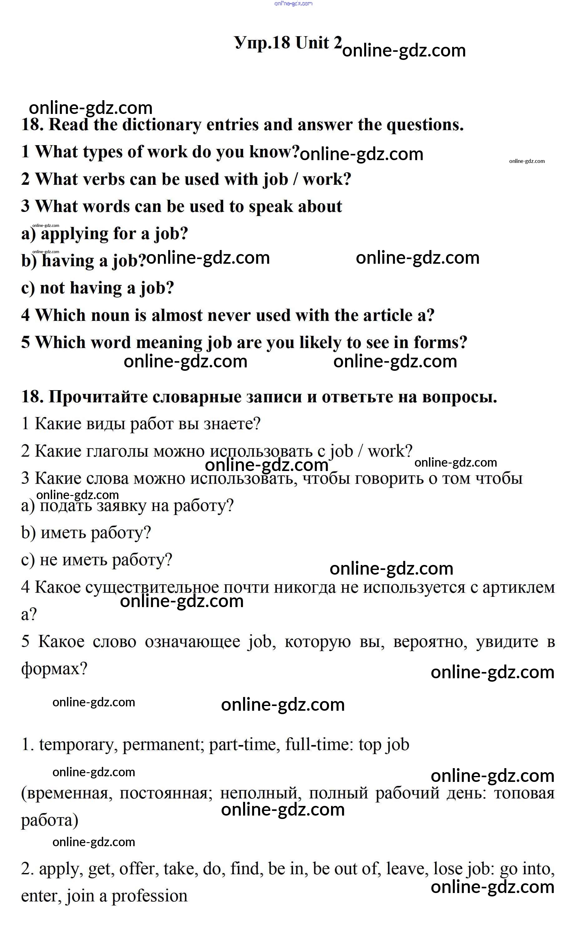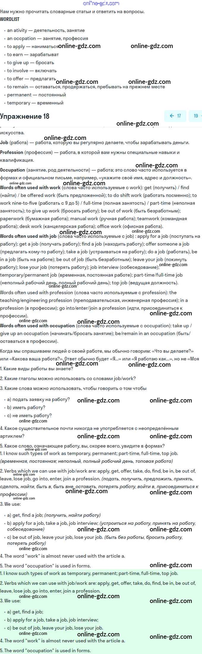 Готовые домашние задания по Английскому языку за 11 класс Учебник Биболетова, Бабушис Enjoy English 2017 - Unit 2. Your Dream Job 18
