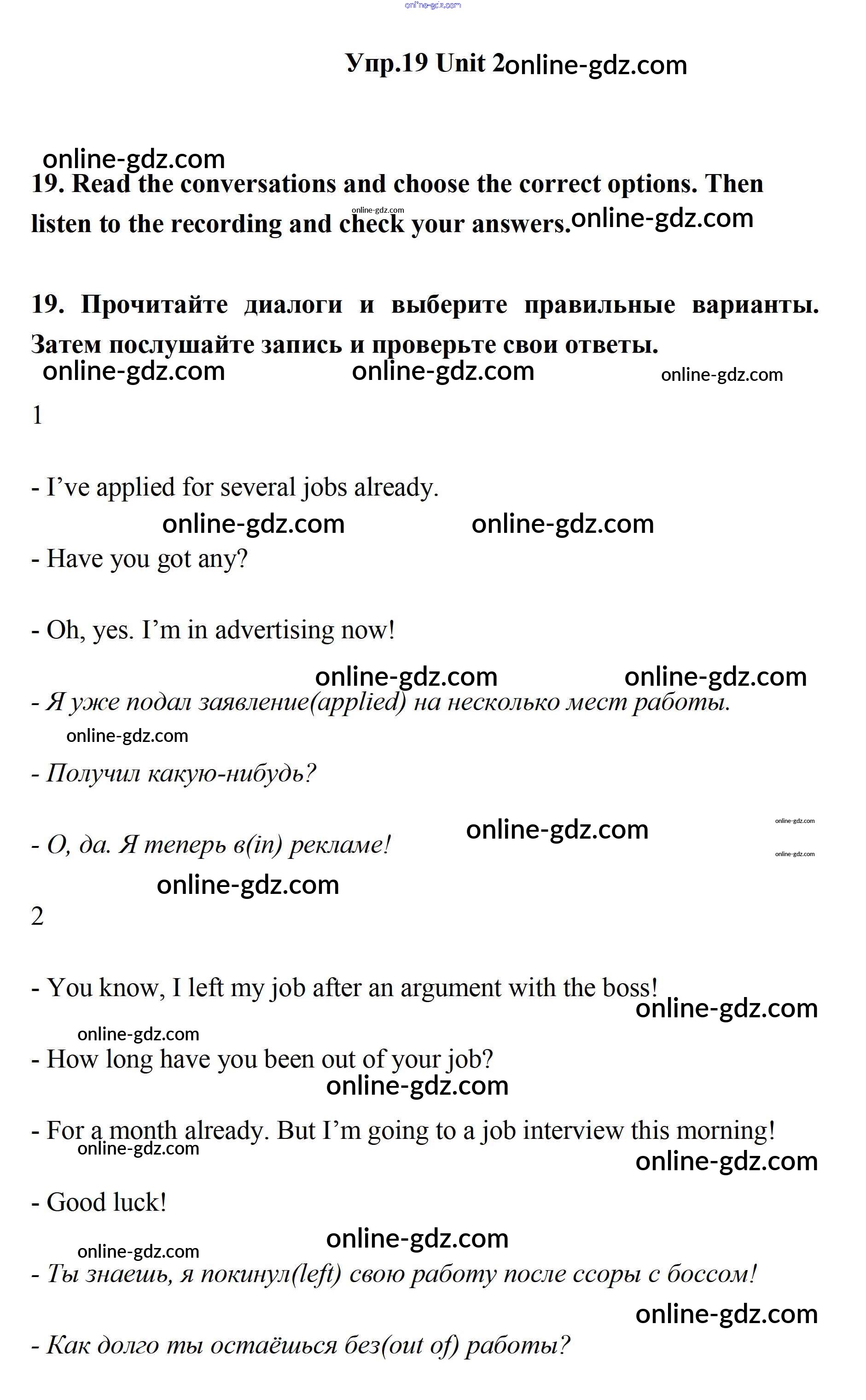 Готовые домашние задания по Английскому языку за 11 класс Учебник Биболетова, Бабушис Enjoy English 2017 - Unit 2. Your Dream Job 19