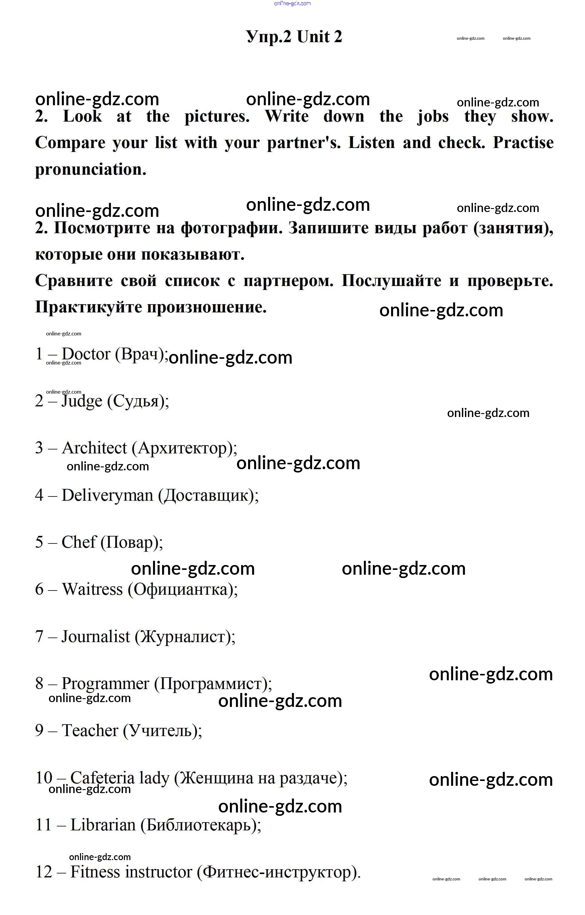 Готовые домашние задания по Английскому языку за 11 класс Учебник Биболетова, Бабушис Enjoy English 2017 - Unit 2. Your Dream Job 2