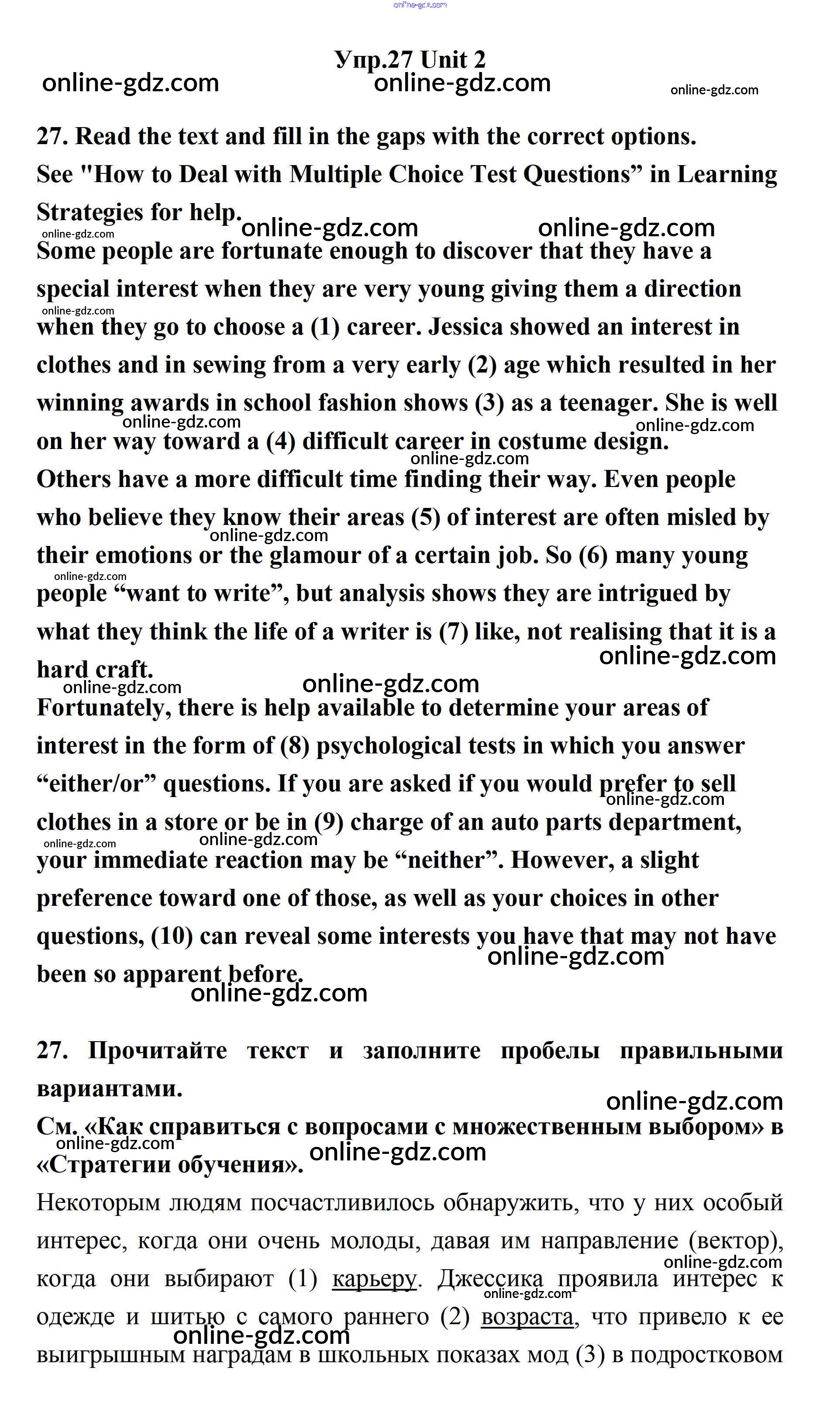 Готовые домашние задания по Английскому языку за 11 класс Учебник Биболетова, Бабушис Enjoy English 2017 - Unit 2. Your Dream Job 27