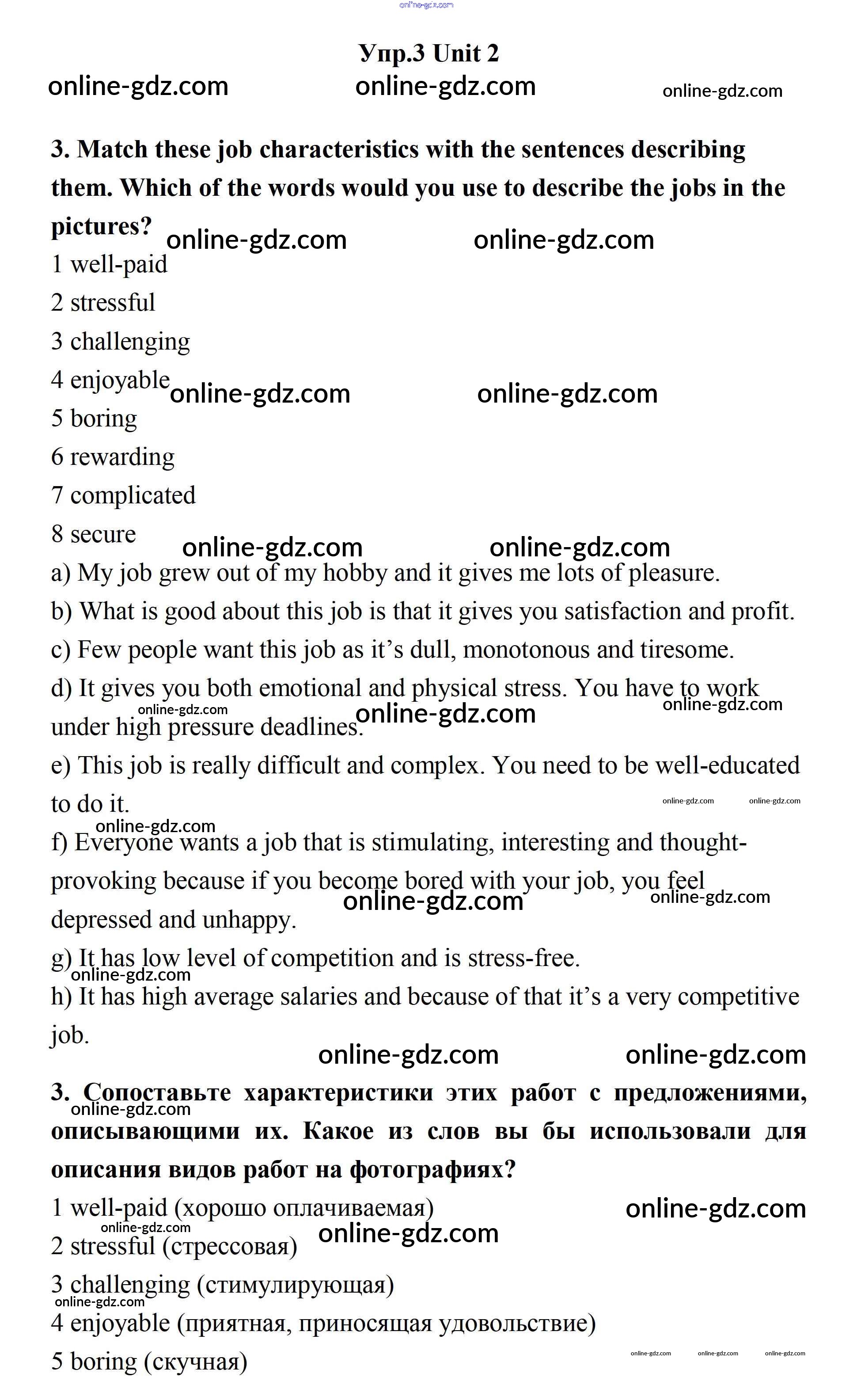 Готовые домашние задания по Английскому языку за 11 класс Учебник Биболетова, Бабушис Enjoy English 2017 - Unit 2. Your Dream Job 3