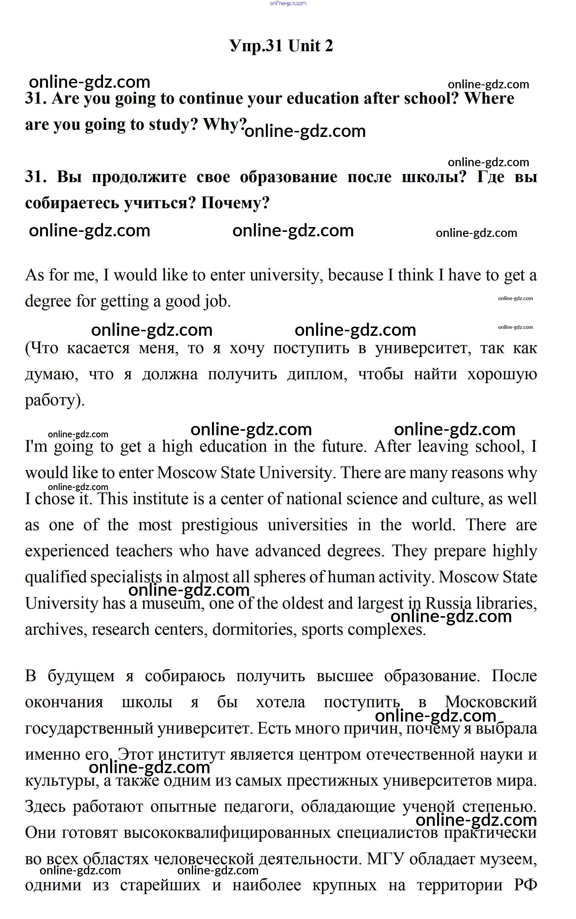 Готовые домашние задания по Английскому языку за 11 класс Учебник Биболетова, Бабушис Enjoy English 2017 - Unit 2. Your Dream Job 31