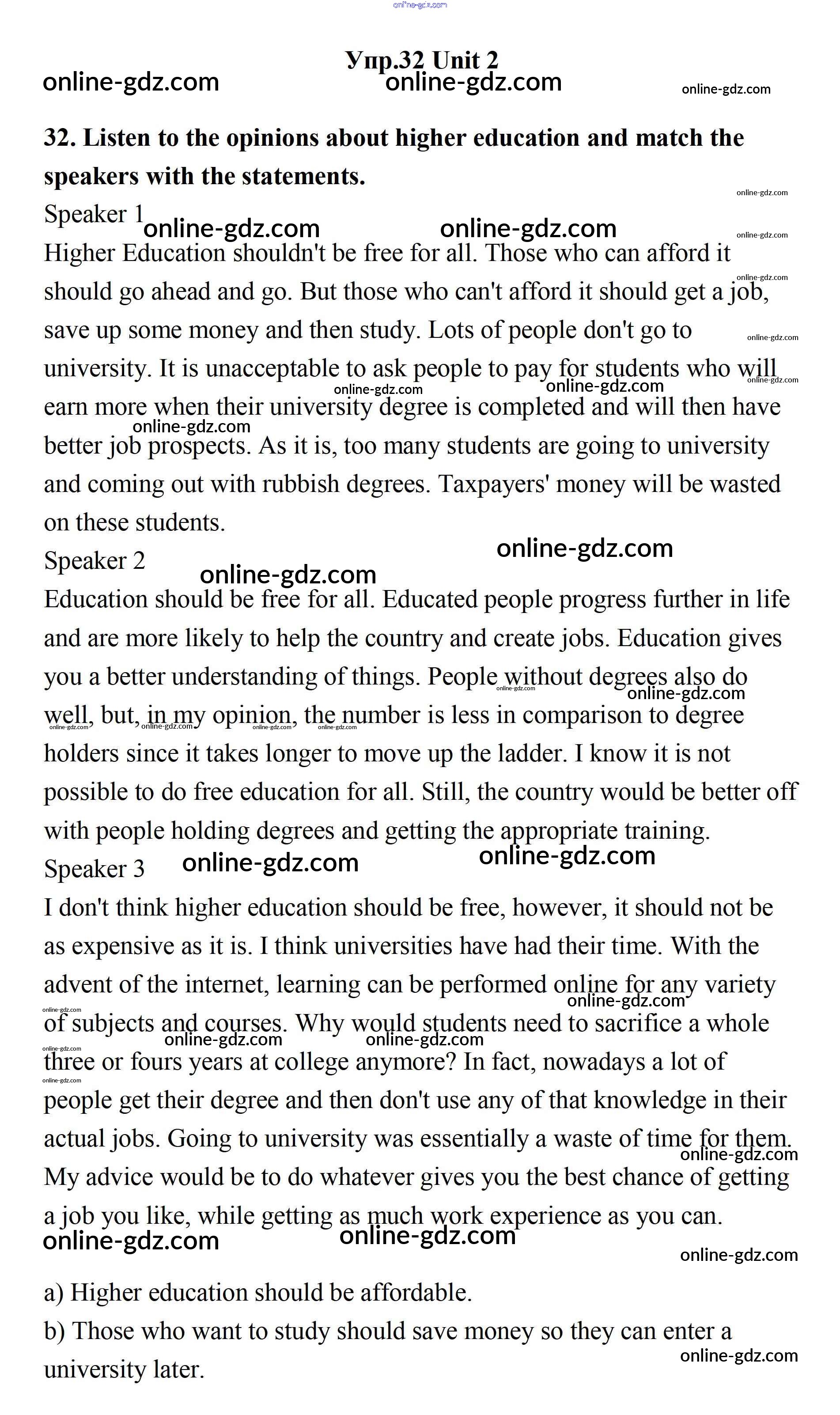 Готовые домашние задания по Английскому языку за 11 класс Учебник Биболетова, Бабушис Enjoy English 2017 - Unit 2. Your Dream Job 32