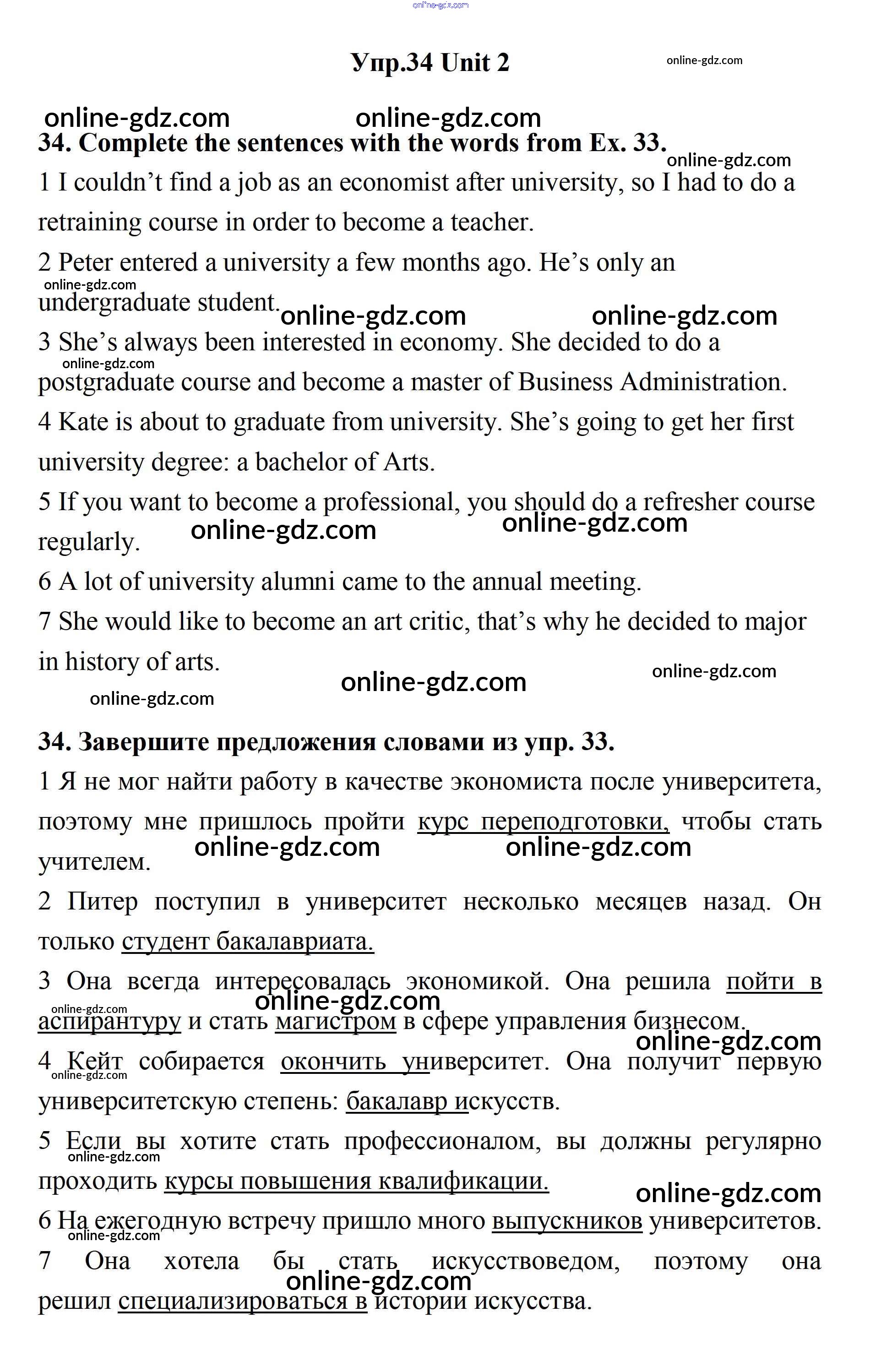 Готовые домашние задания по Английскому языку за 11 класс Учебник Биболетова, Бабушис Enjoy English 2017 - Unit 2. Your Dream Job 34