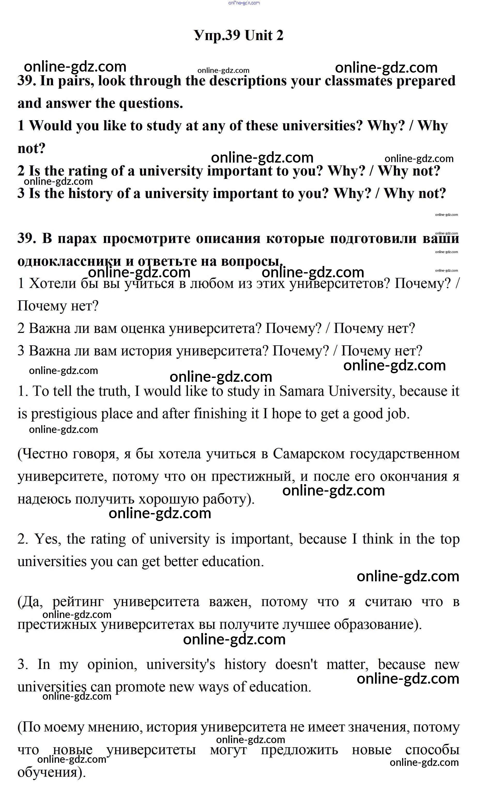 Готовые домашние задания по Английскому языку за 11 класс Учебник Биболетова, Бабушис Enjoy English 2017 - Unit 2. Your Dream Job 39