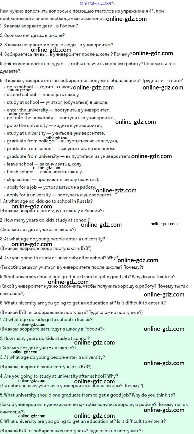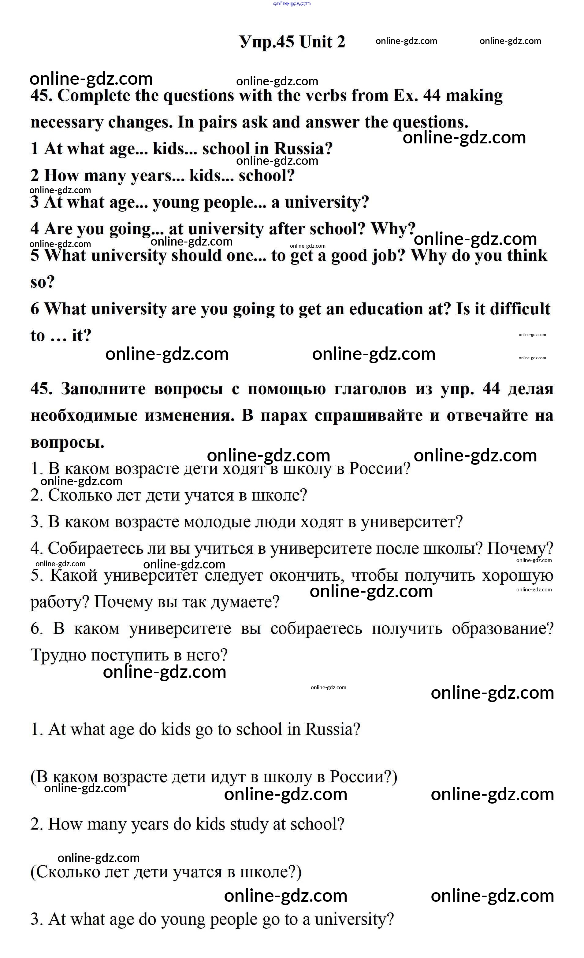 Готовые домашние задания по Английскому языку за 11 класс Учебник Биболетова, Бабушис Enjoy English 2017 - Unit 2. Your Dream Job 45