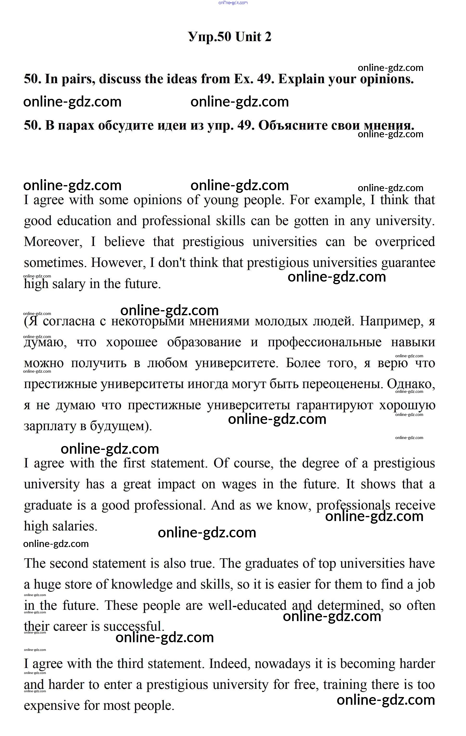 Готовые домашние задания по Английскому языку за 11 класс Учебник Биболетова, Бабушис Enjoy English 2017 - Unit 2. Your Dream Job 50