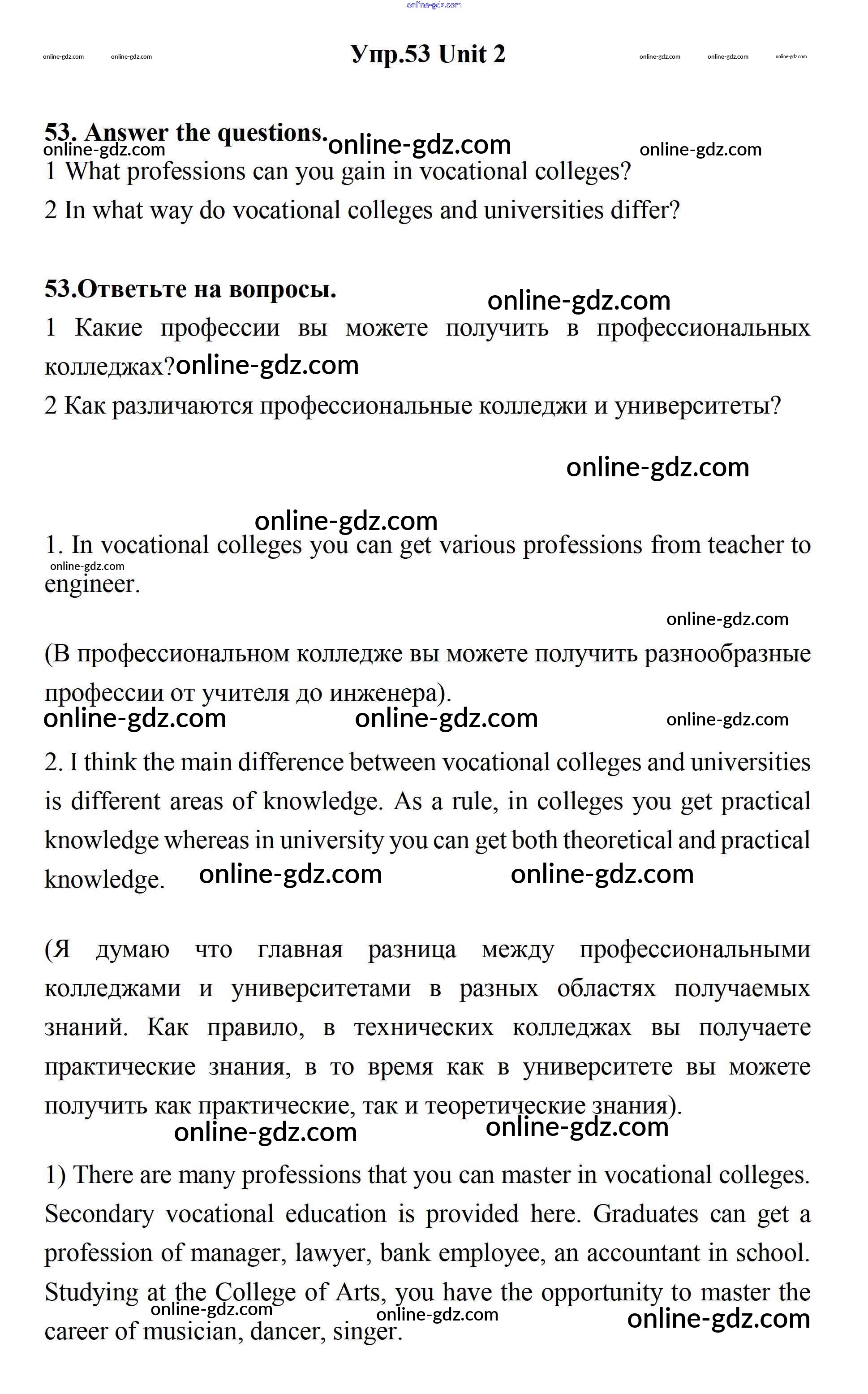Готовые домашние задания по Английскому языку за 11 класс Учебник Биболетова, Бабушис Enjoy English 2017 - Unit 2. Your Dream Job 53