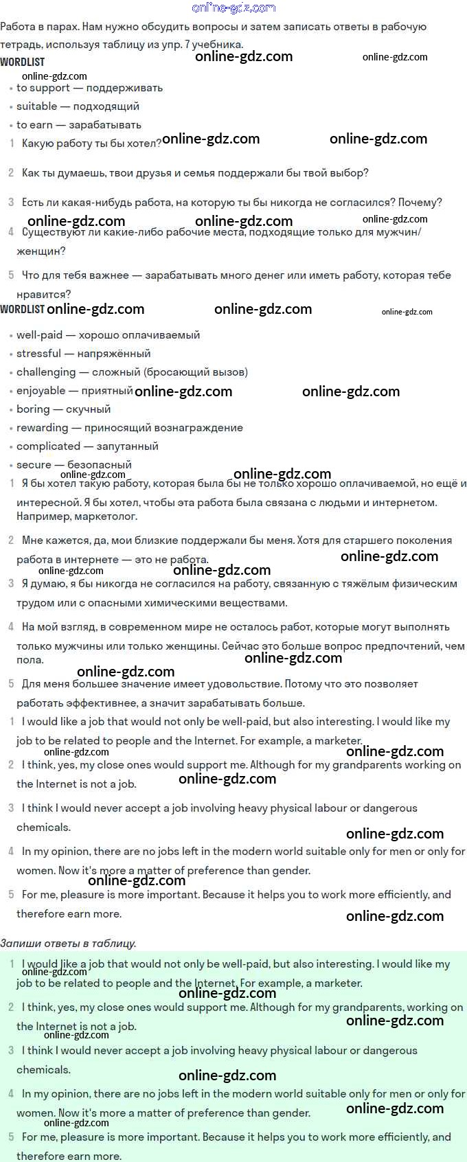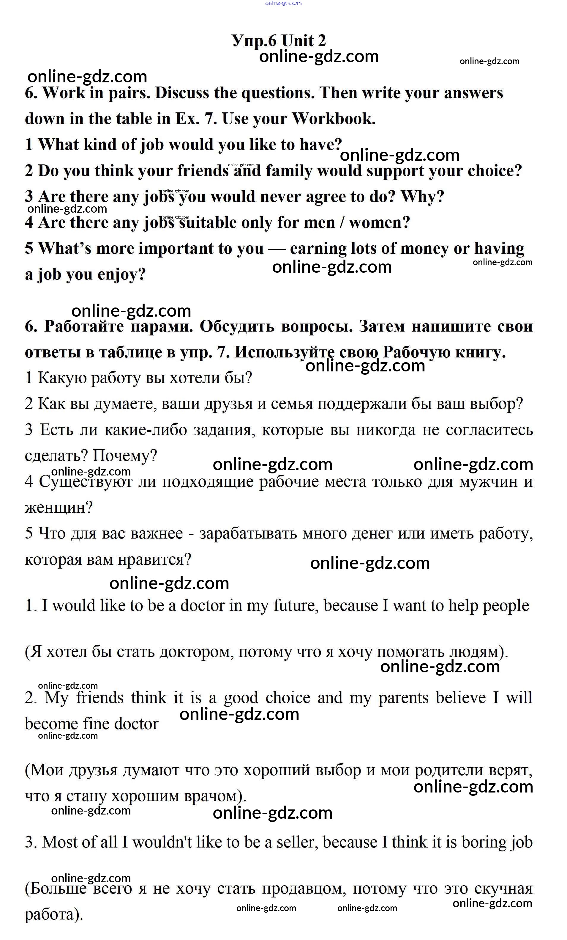 Готовые домашние задания по Английскому языку за 11 класс Учебник Биболетова, Бабушис Enjoy English 2017 - Unit 2. Your Dream Job 6