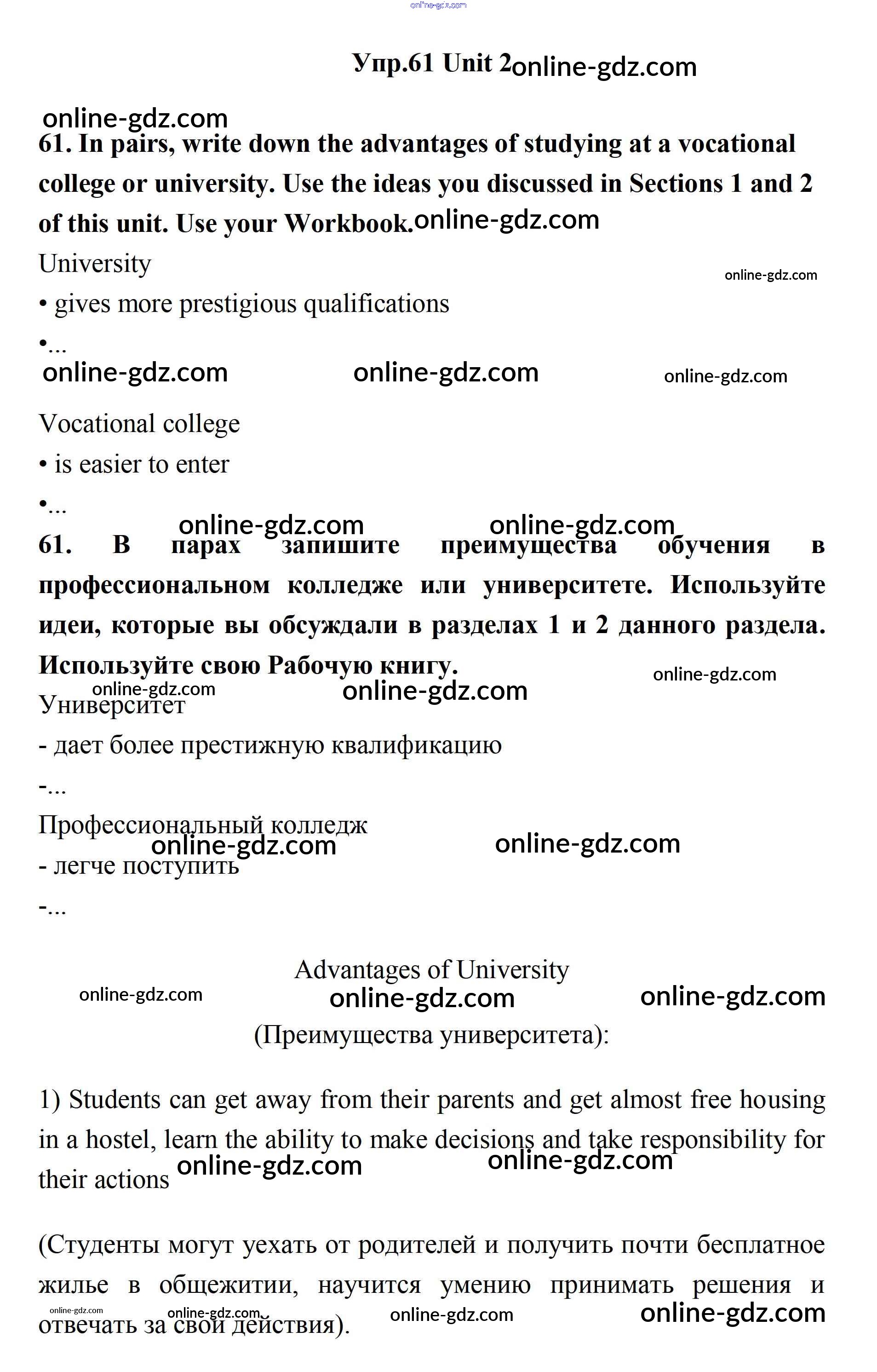 Готовые домашние задания по Английскому языку за 11 класс Учебник Биболетова, Бабушис Enjoy English 2017 - Unit 2. Your Dream Job 61