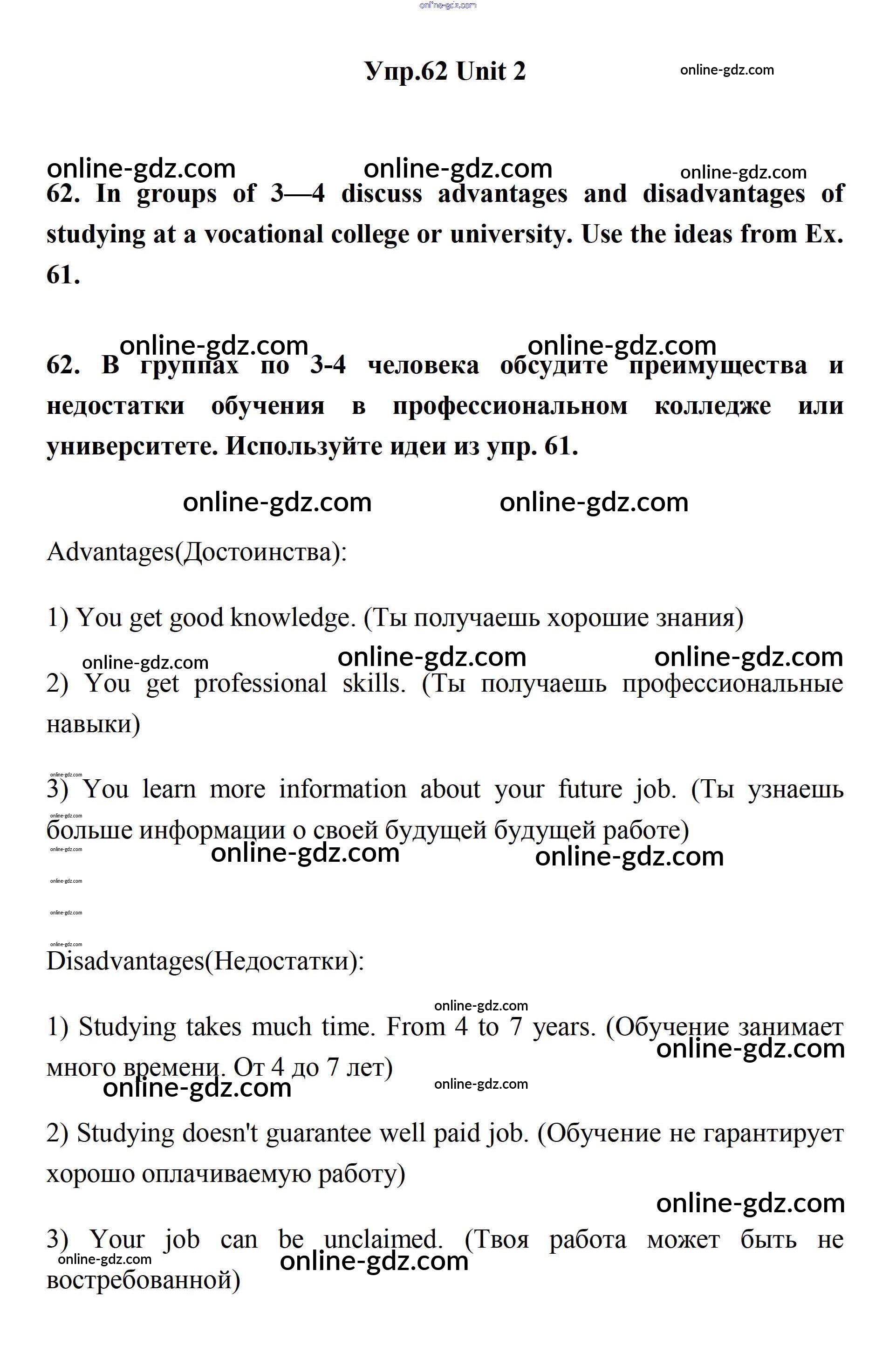 Готовые домашние задания по Английскому языку за 11 класс Учебник Биболетова, Бабушис Enjoy English 2017 - Unit 2. Your Dream Job 62