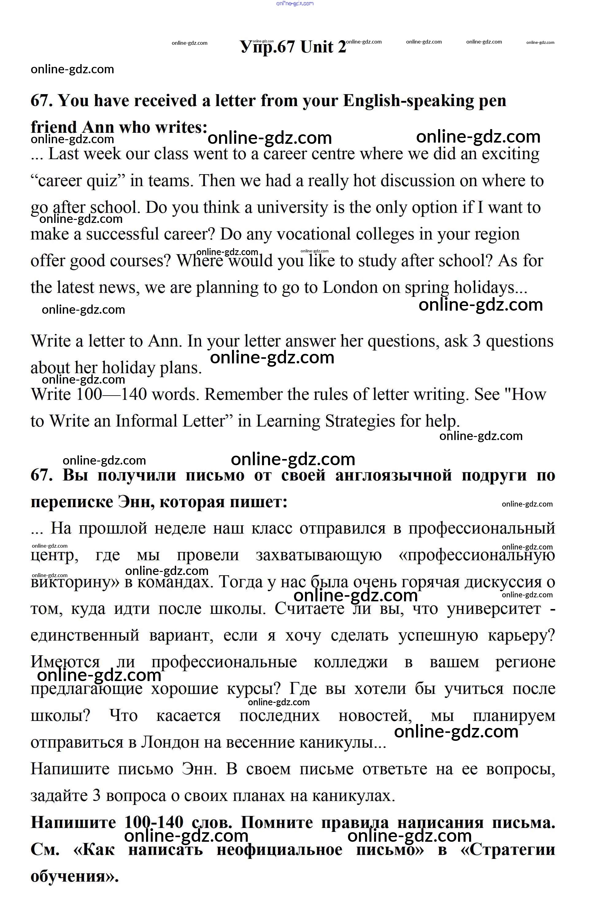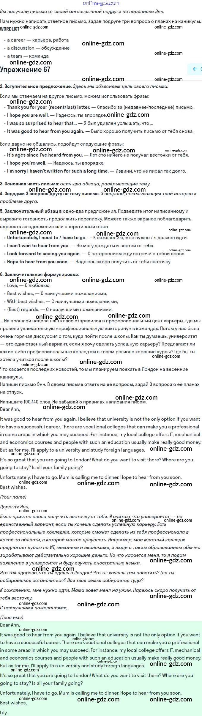 Готовые домашние задания по Английскому языку за 11 класс Учебник Биболетова, Бабушис Enjoy English 2017 - Unit 2. Your Dream Job 67