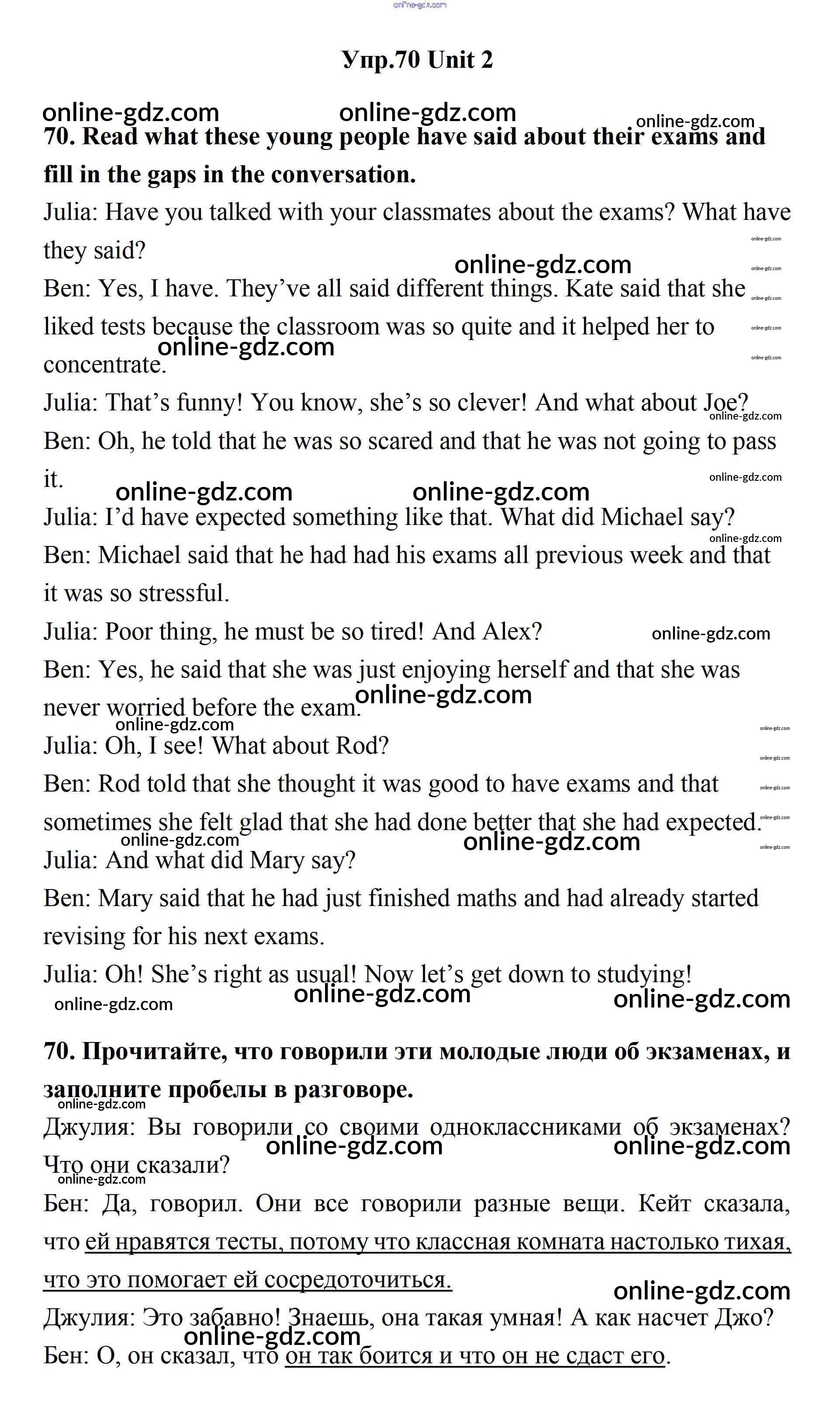 Готовые домашние задания по Английскому языку за 11 класс Учебник Биболетова, Бабушис Enjoy English 2017 - Unit 2. Your Dream Job 70