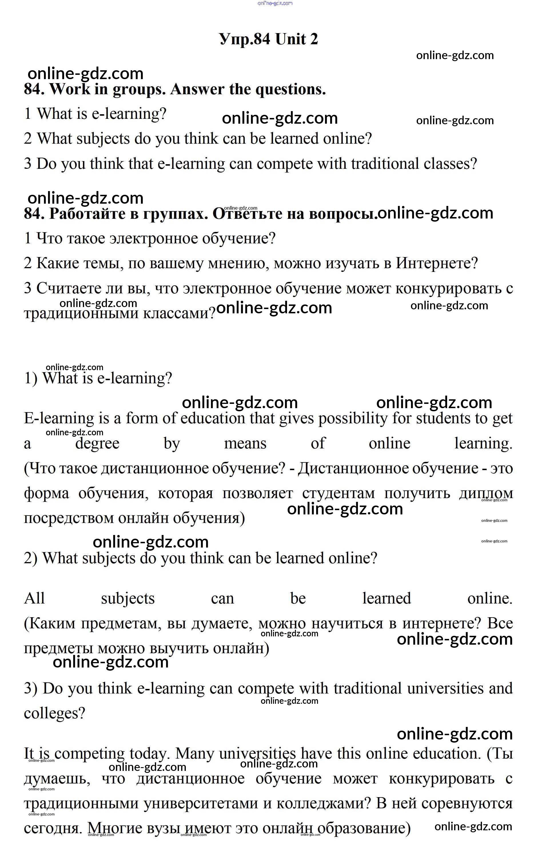 Готовые домашние задания по Английскому языку за 11 класс Учебник Биболетова, Бабушис Enjoy English 2017 - Unit 2. Your Dream Job 84