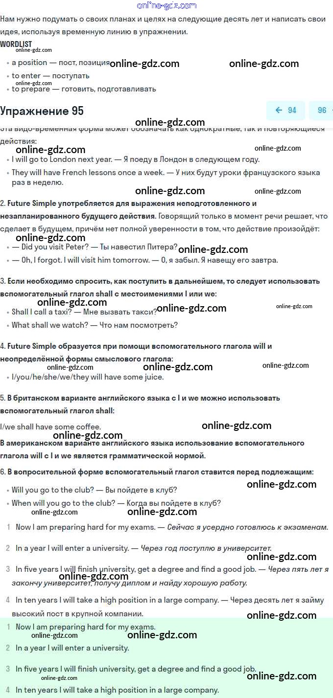 Готовые домашние задания по Английскому языку за 11 класс Учебник Биболетова, Бабушис Enjoy English 2017 - Unit 2. Your Dream Job 95