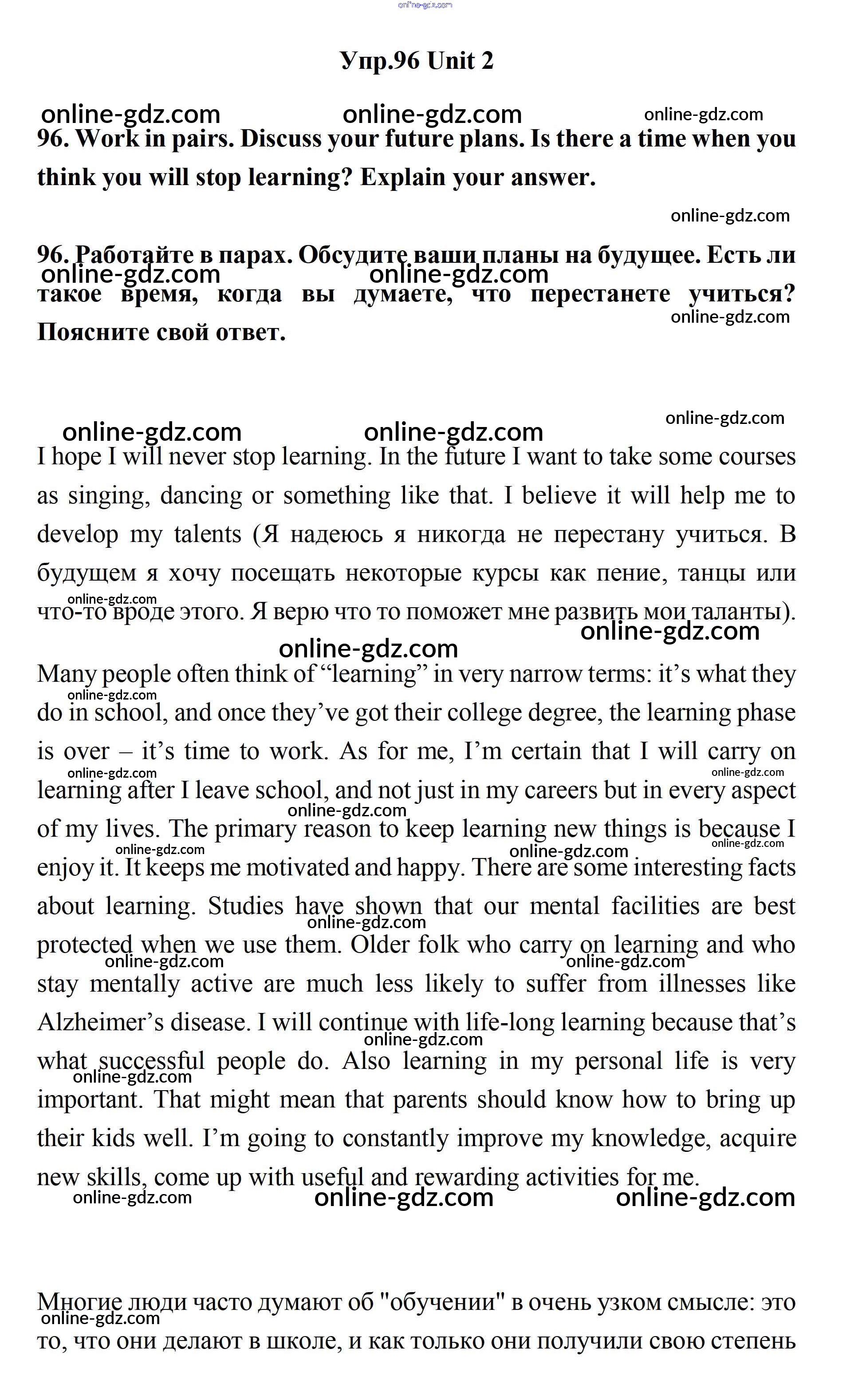 Готовые домашние задания по Английскому языку за 11 класс Учебник Биболетова, Бабушис Enjoy English 2017 - Unit 2. Your Dream Job 96