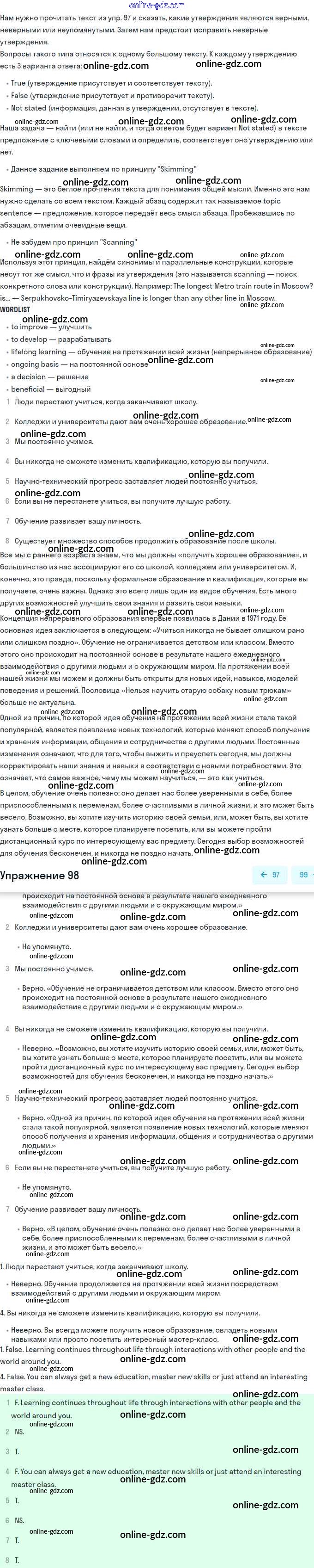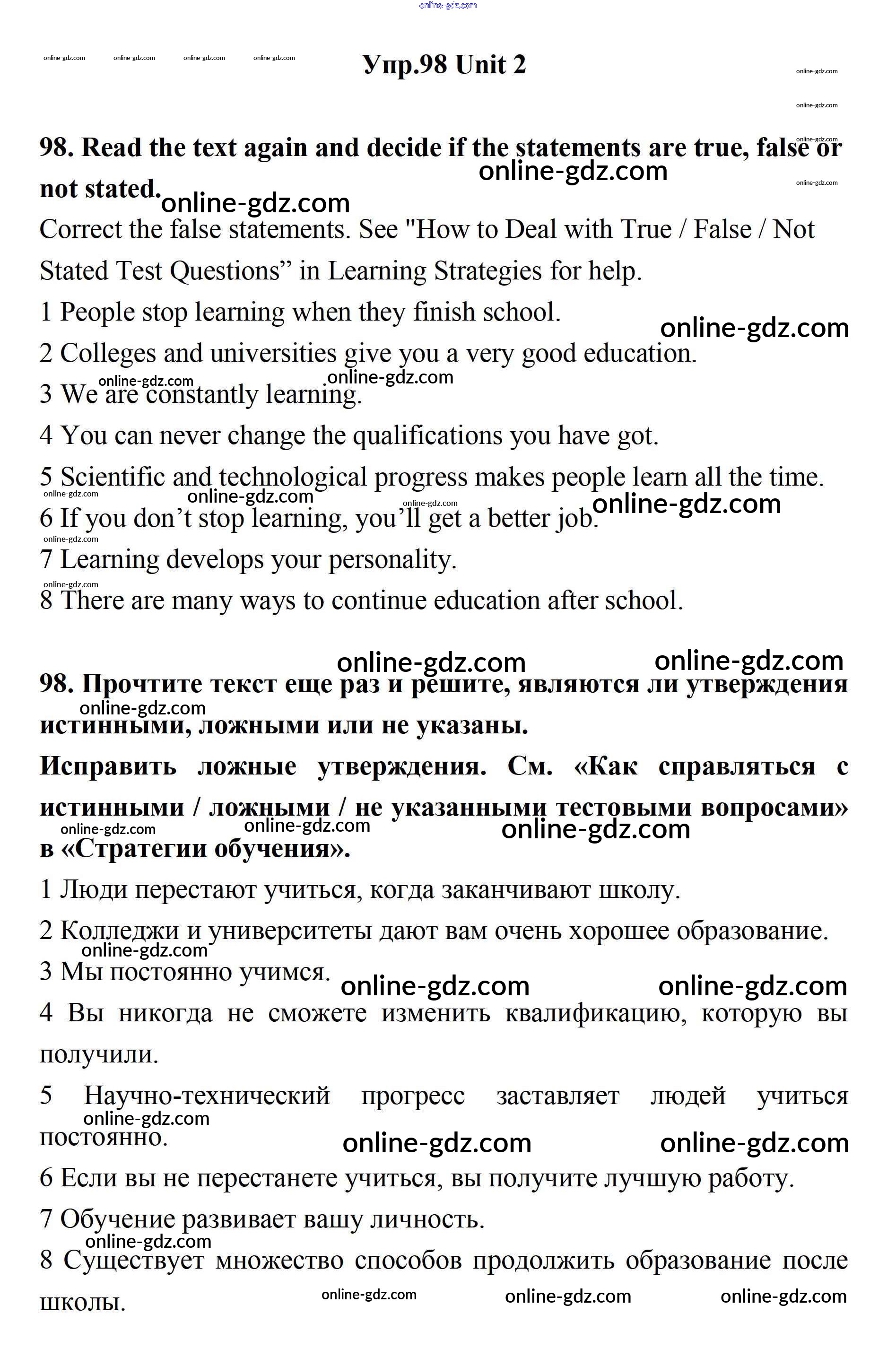 Готовые домашние задания по Английскому языку за 11 класс Учебник Биболетова, Бабушис Enjoy English 2017 - Unit 2. Your Dream Job 98