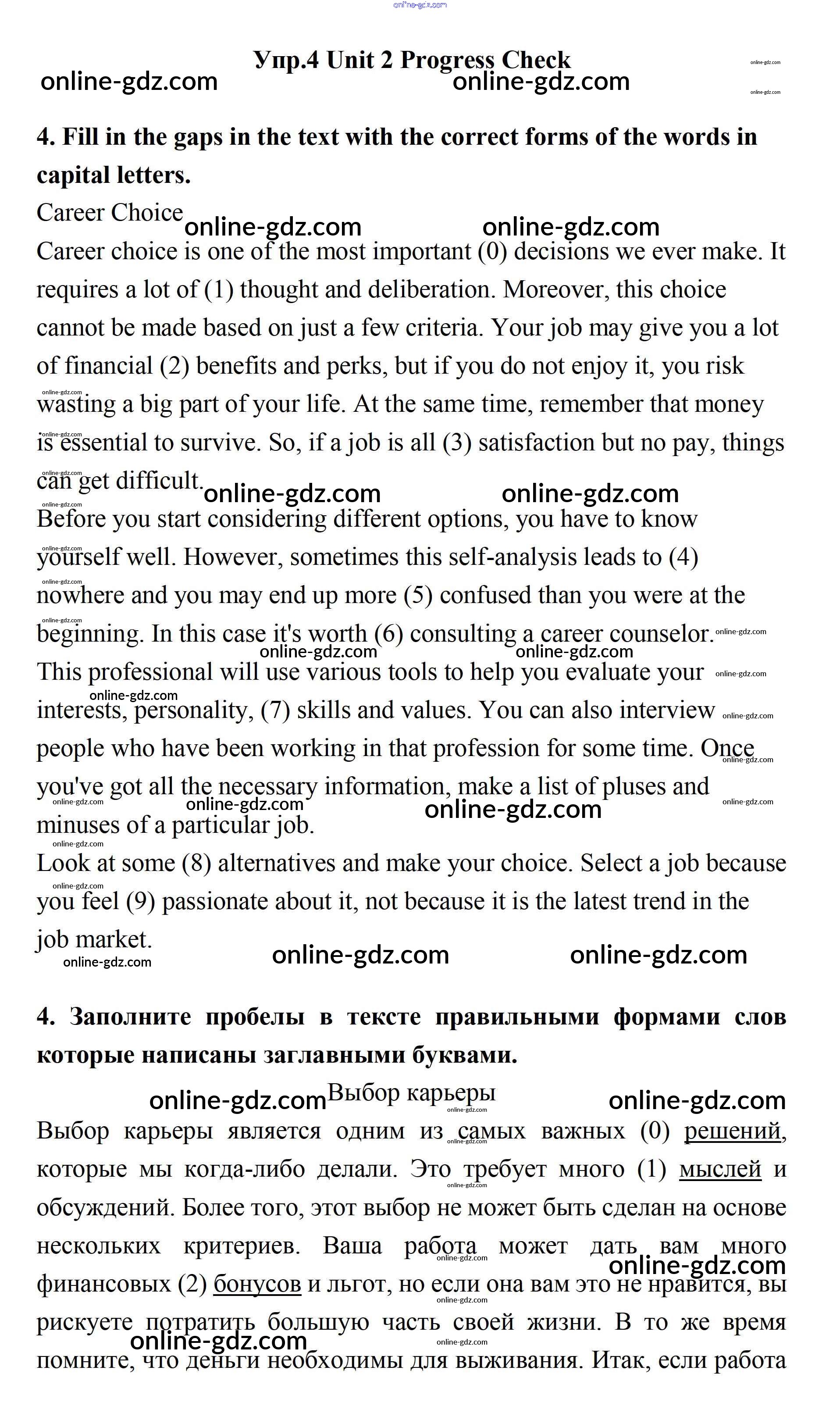 Готовые домашние задания по Английскому языку за 11 класс Учебник Биболетова, Бабушис Enjoy English 2017 - Progress Check Unit 2. Your Dream Job 4