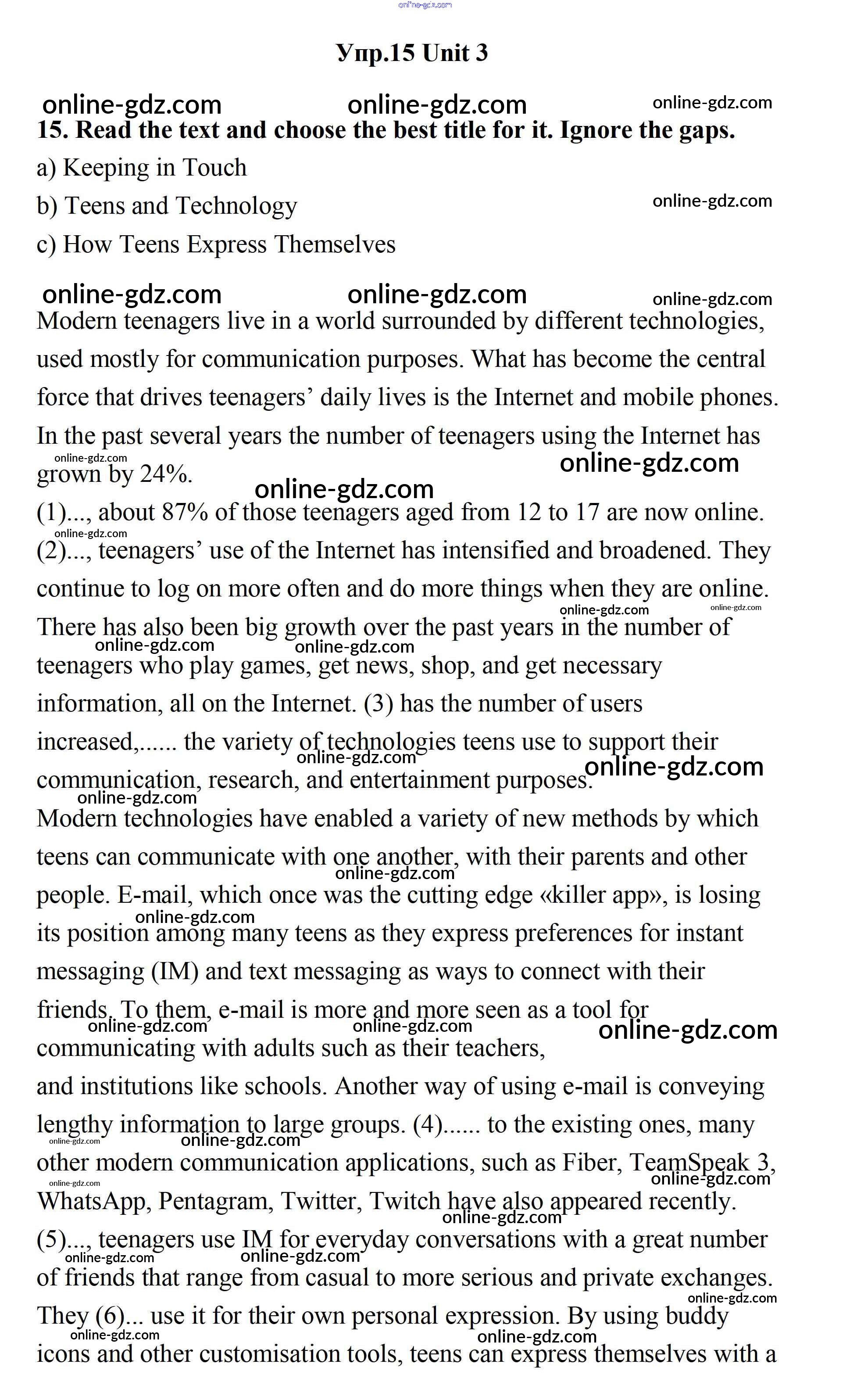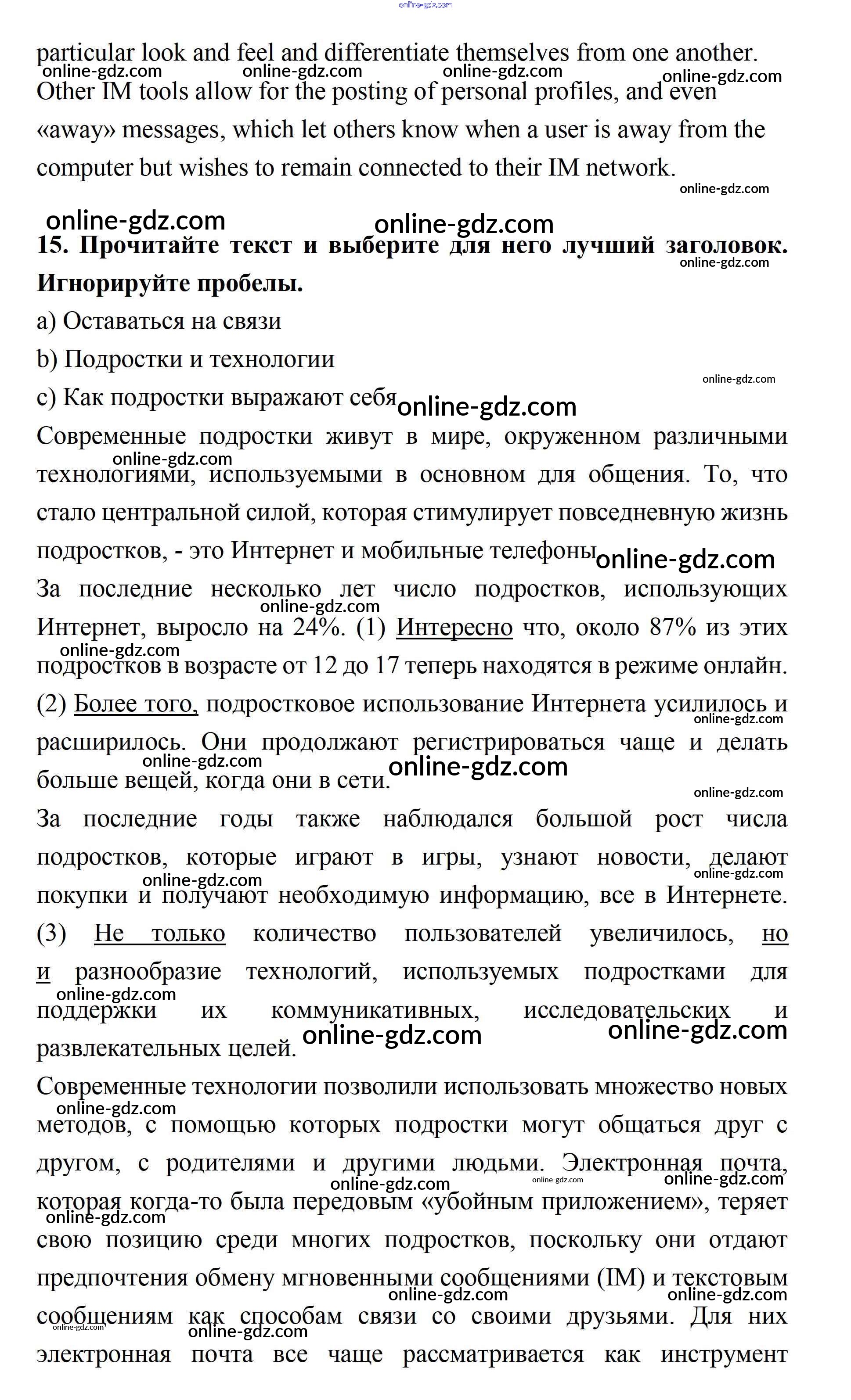 Готовые домашние задания по Английскому языку за 11 класс Учебник Биболетова, Бабушис Enjoy English 2017 - Unit 3. New Technological World 15