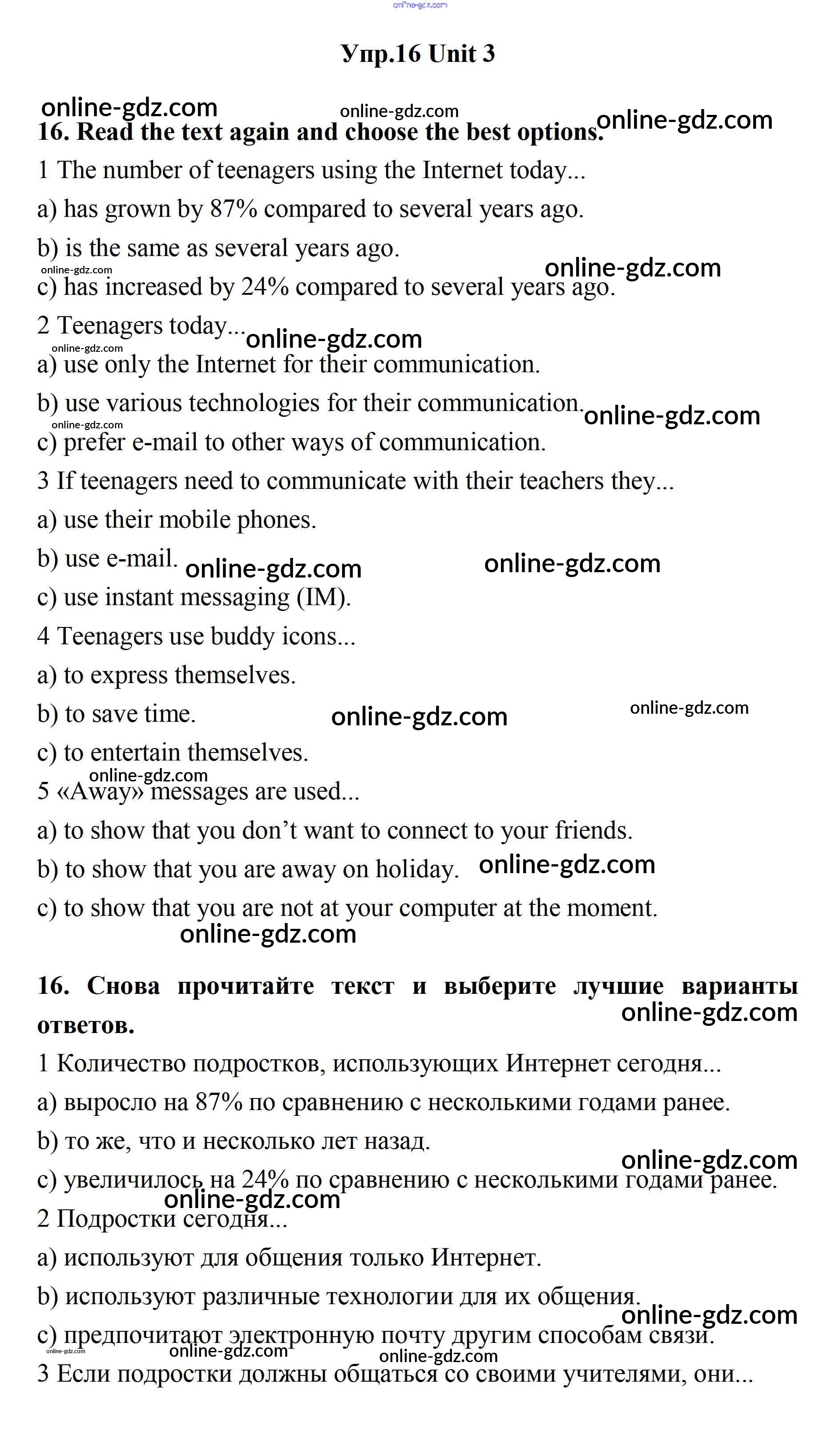 Готовые домашние задания по Английскому языку за 11 класс Учебник Биболетова, Бабушис Enjoy English 2017 - Unit 3. New Technological World 16