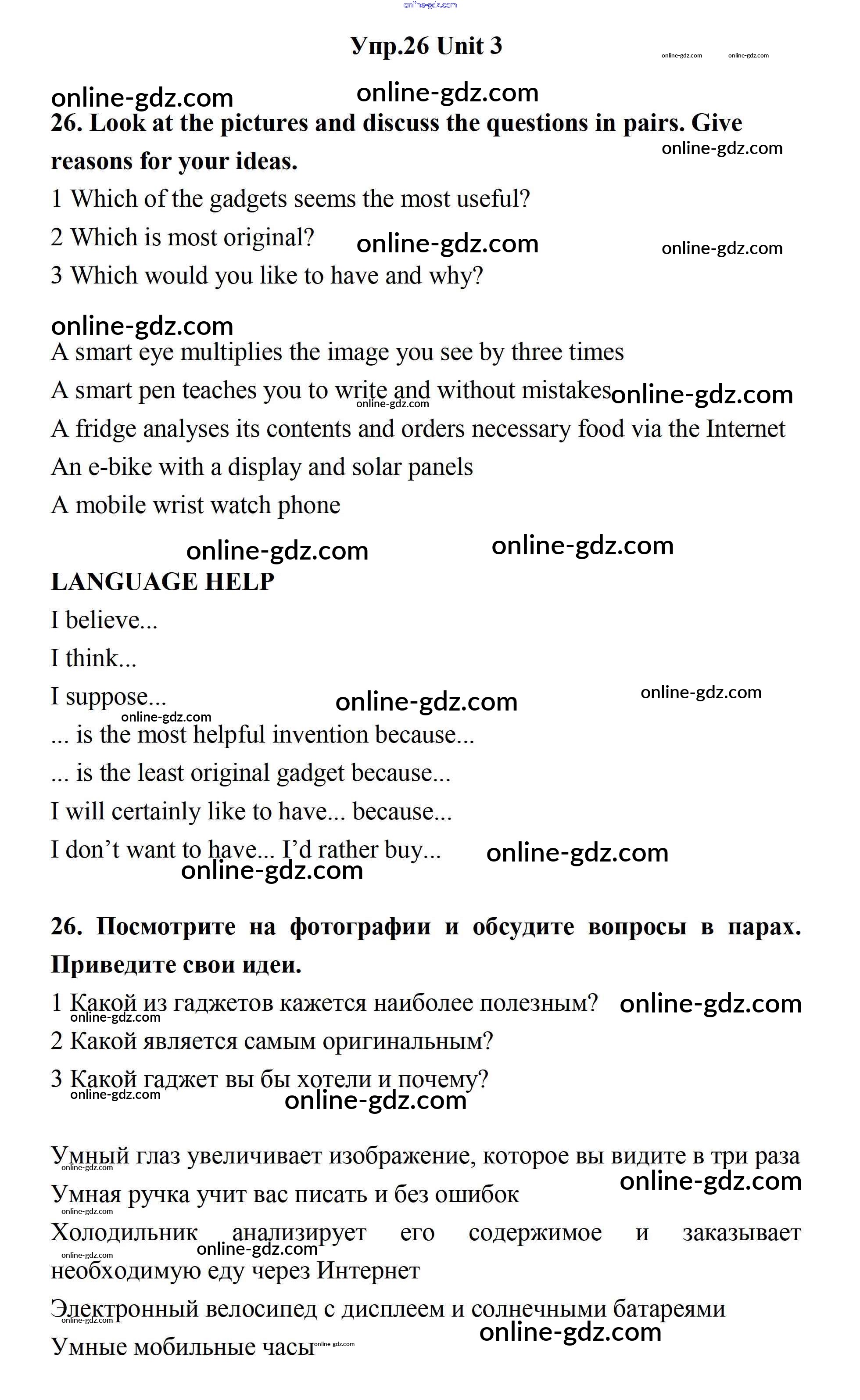 Готовые домашние задания по Английскому языку за 11 класс Учебник Биболетова, Бабушис Enjoy English 2017 - Unit 3. New Technological World 26