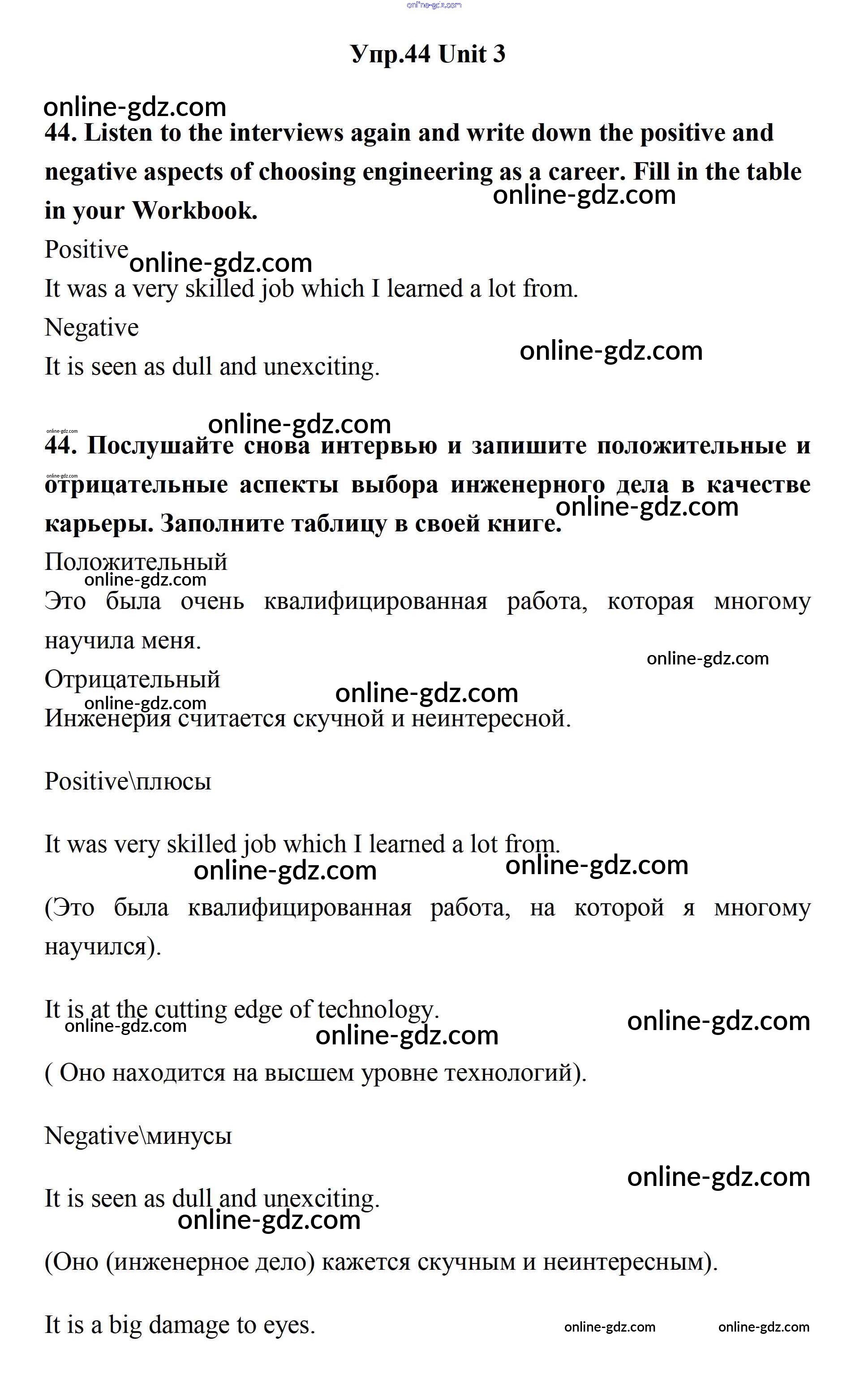 Готовые домашние задания по Английскому языку за 11 класс Учебник Биболетова, Бабушис Enjoy English 2017 - Unit 3. New Technological World 44
