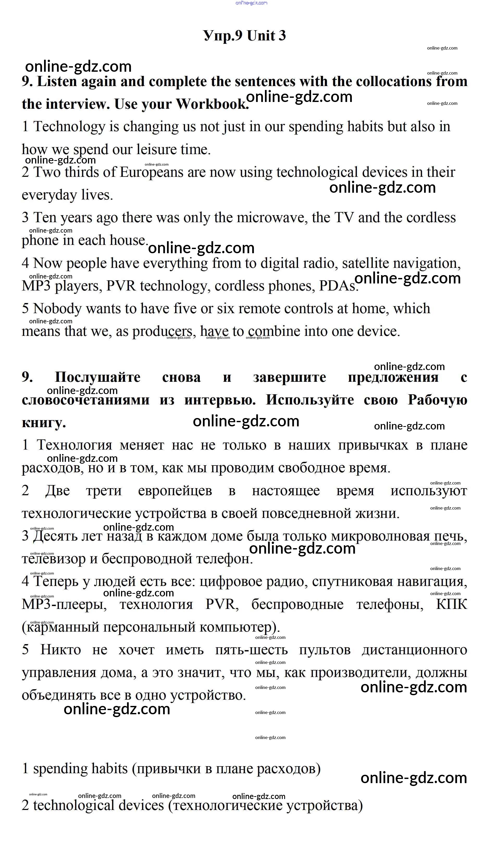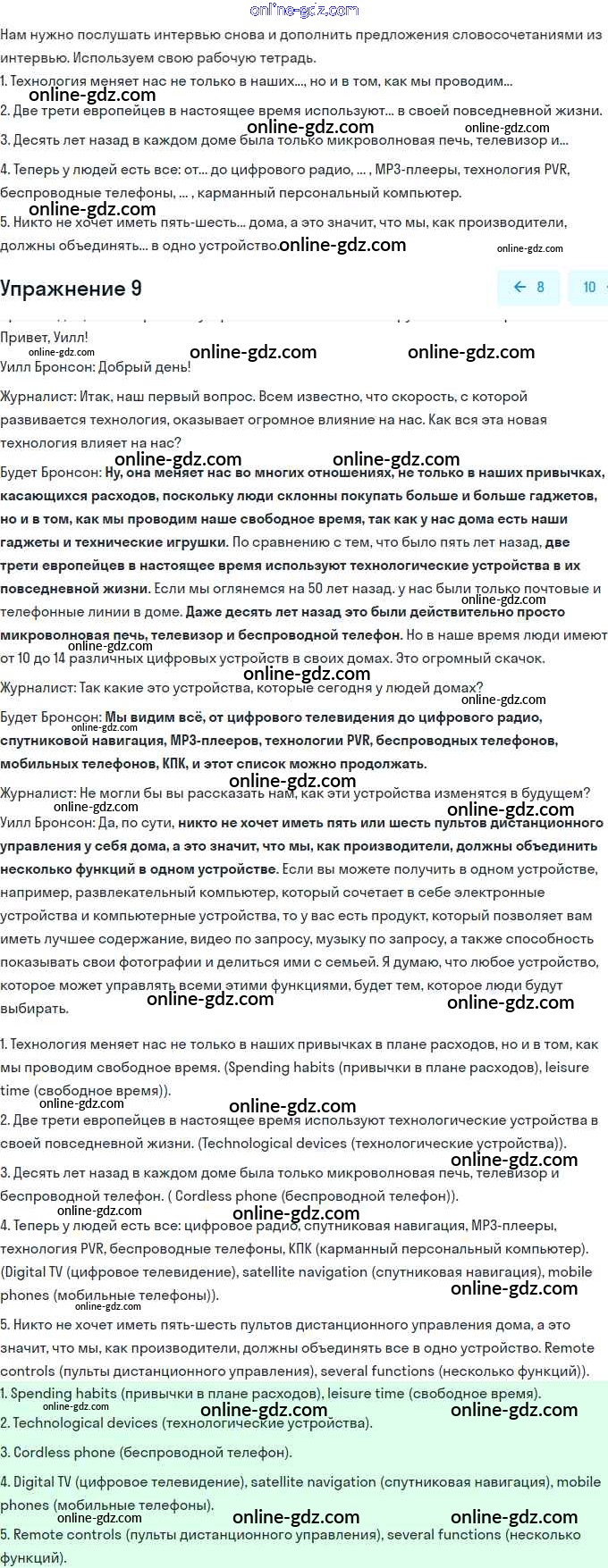 Готовые домашние задания по Английскому языку за 11 класс Учебник Биболетова, Бабушис Enjoy English 2017 - Unit 3. New Technological World 9
