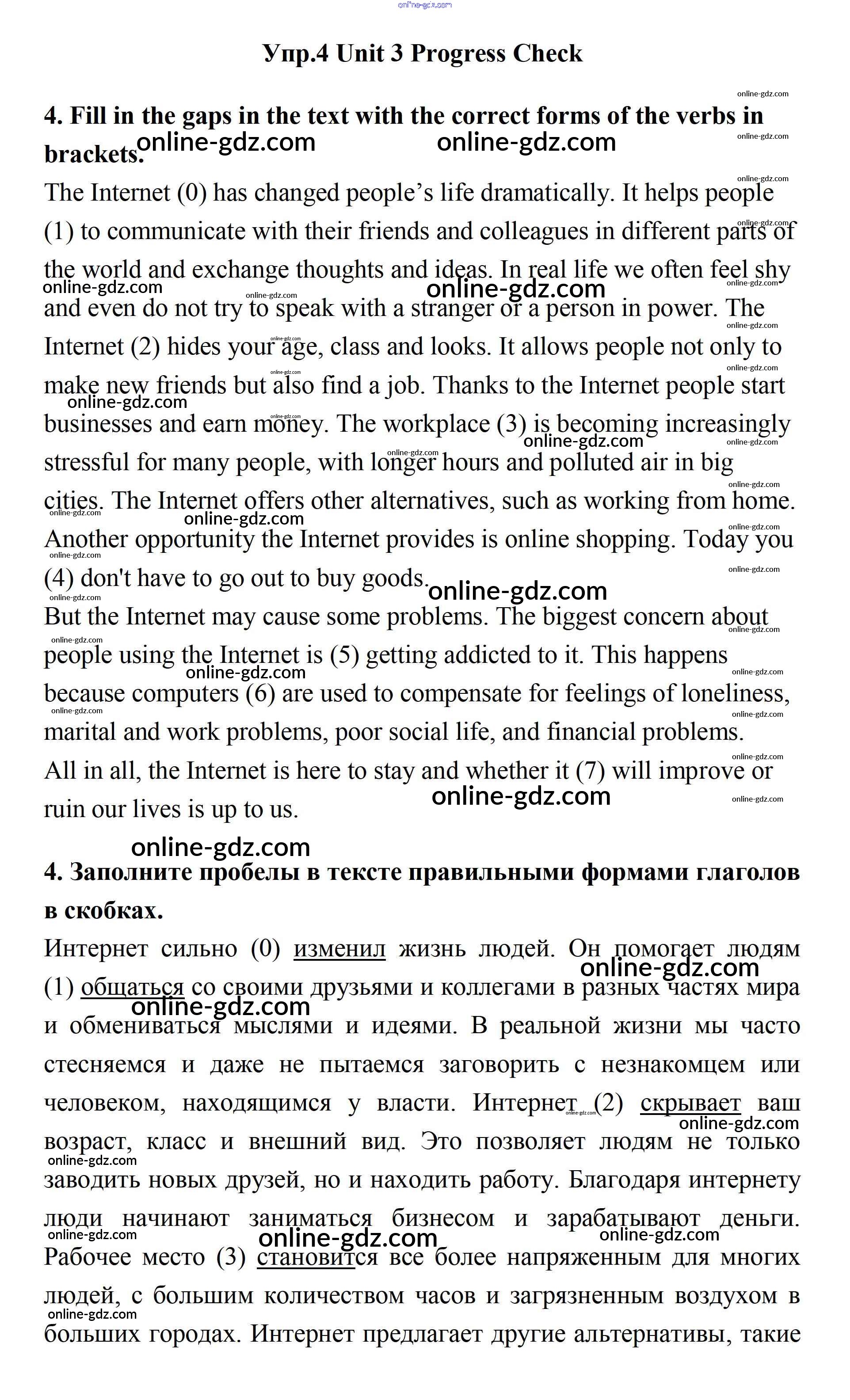 Готовые домашние задания по Английскому языку за 11 класс Учебник Биболетова, Бабушис Enjoy English 2017 - Progress Check Unit 3. New Technological World 4